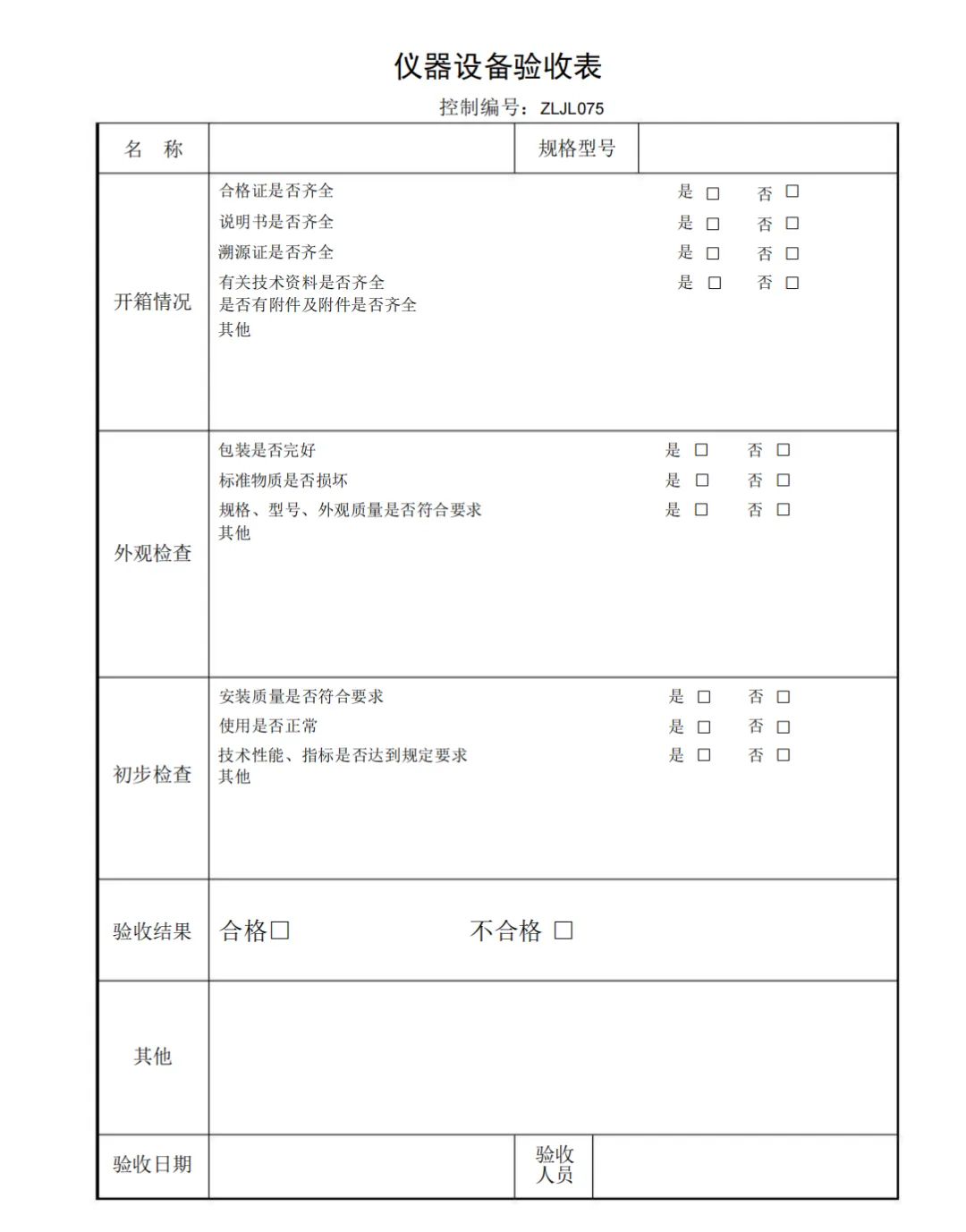 仪器设备验收表