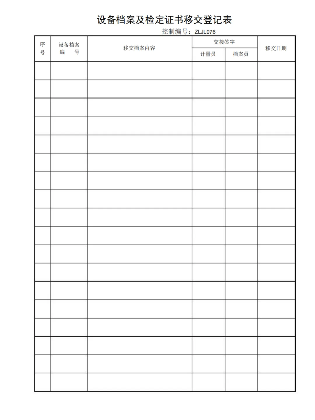 设备档案及检定证书移交登记表