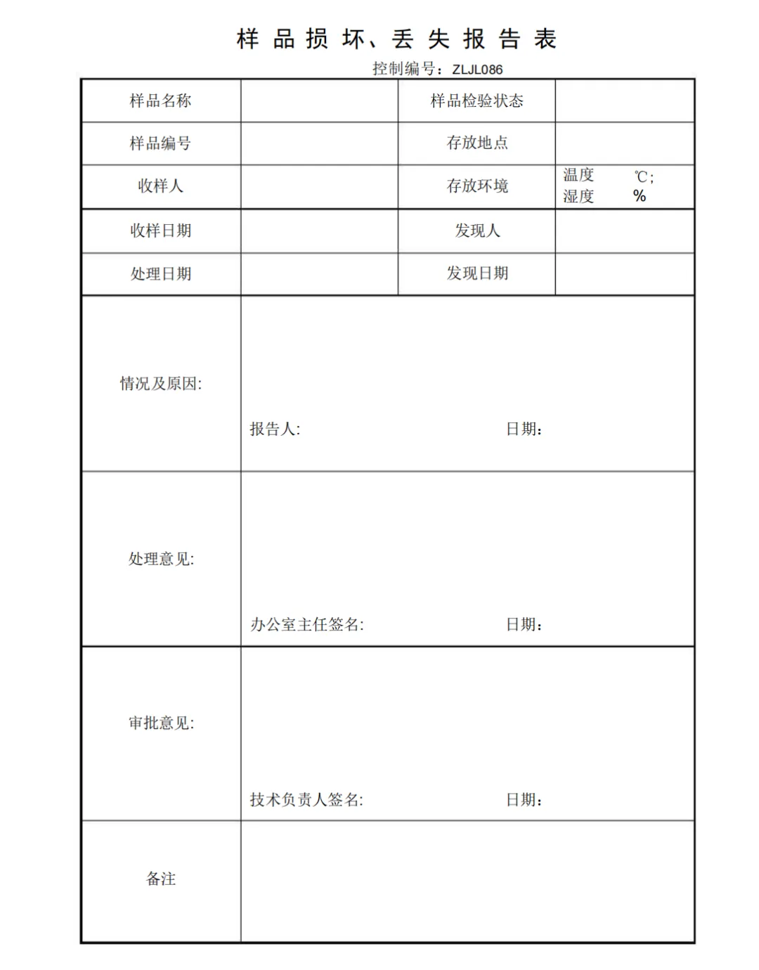 样品损坏、丢失报告表