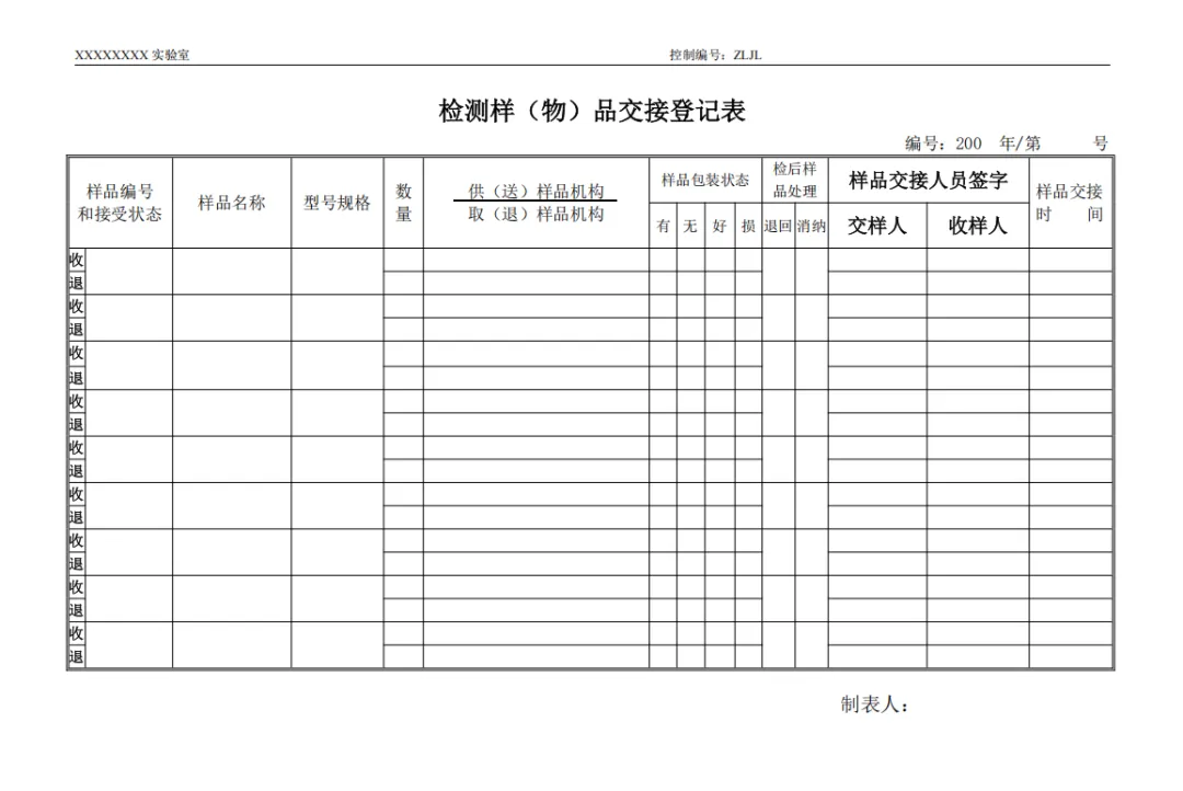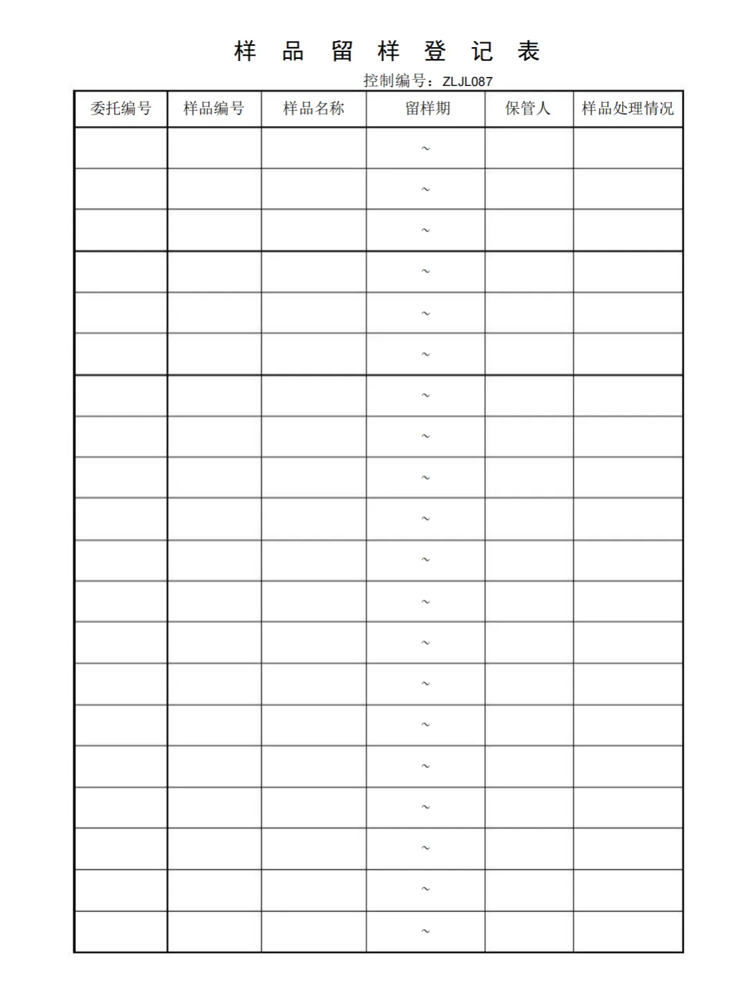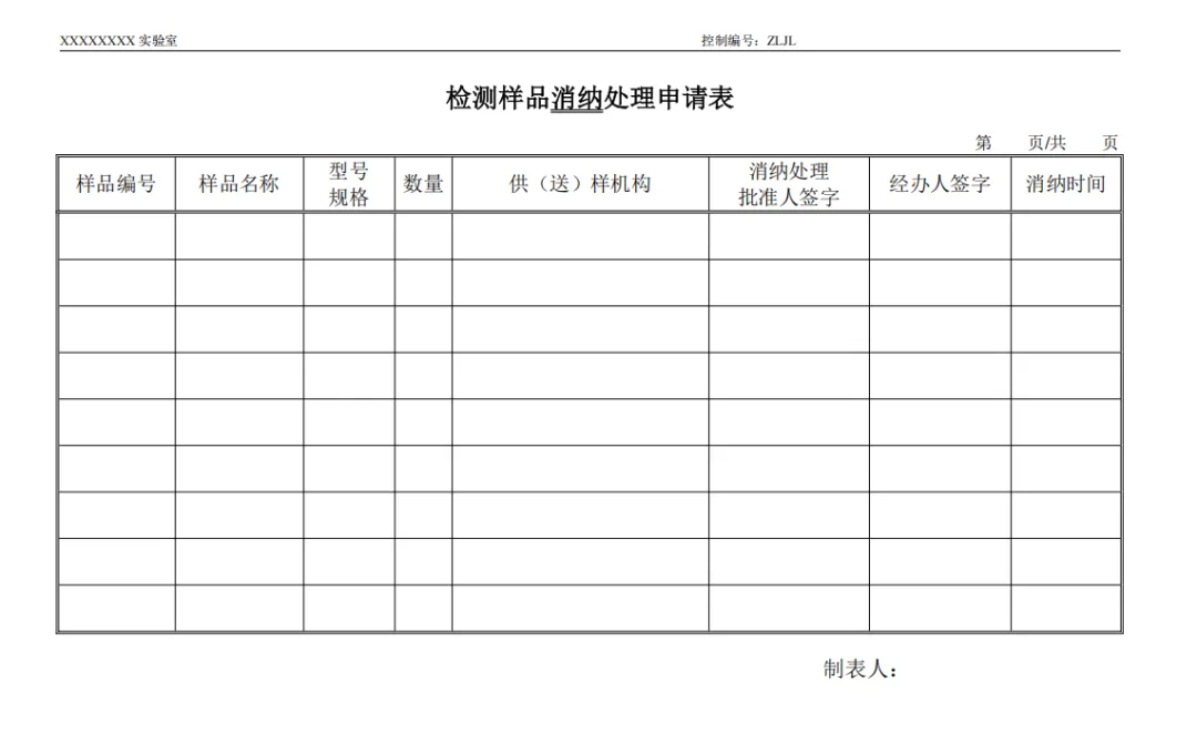 样品留样登记表