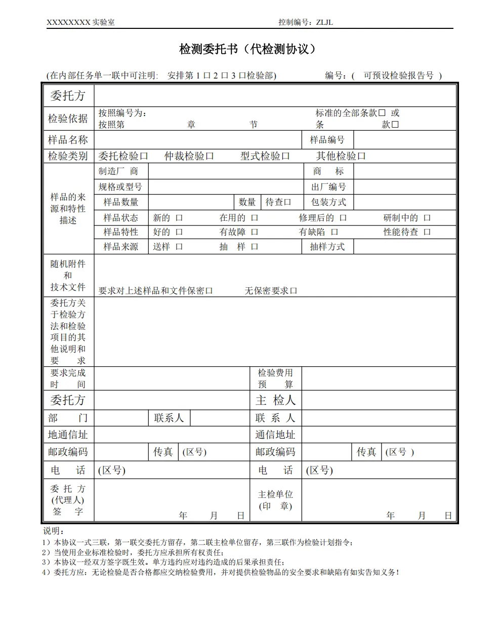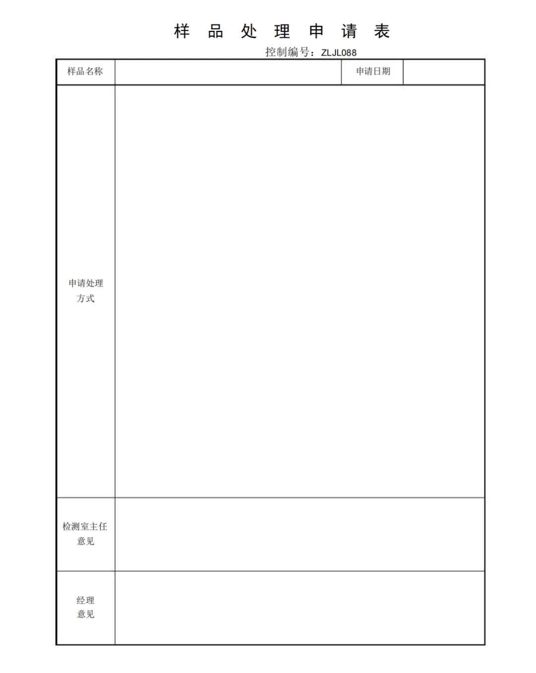 样品处理申请表