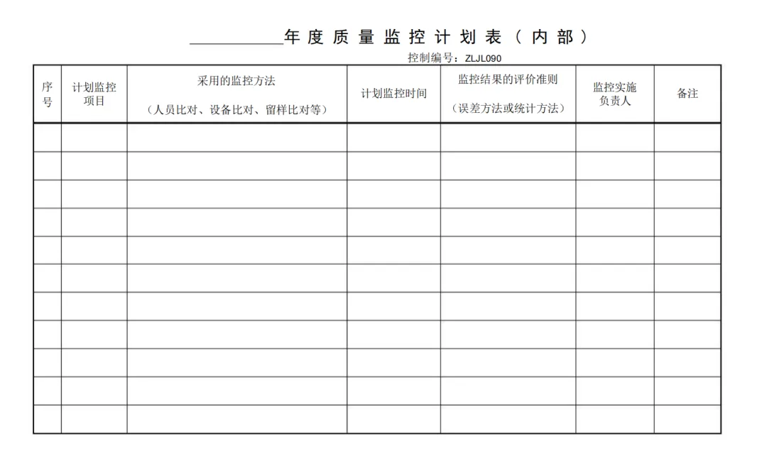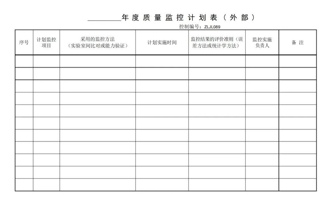 年度质量监控计划表(外部)