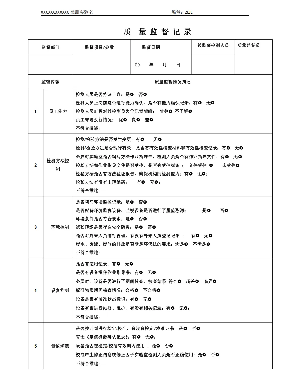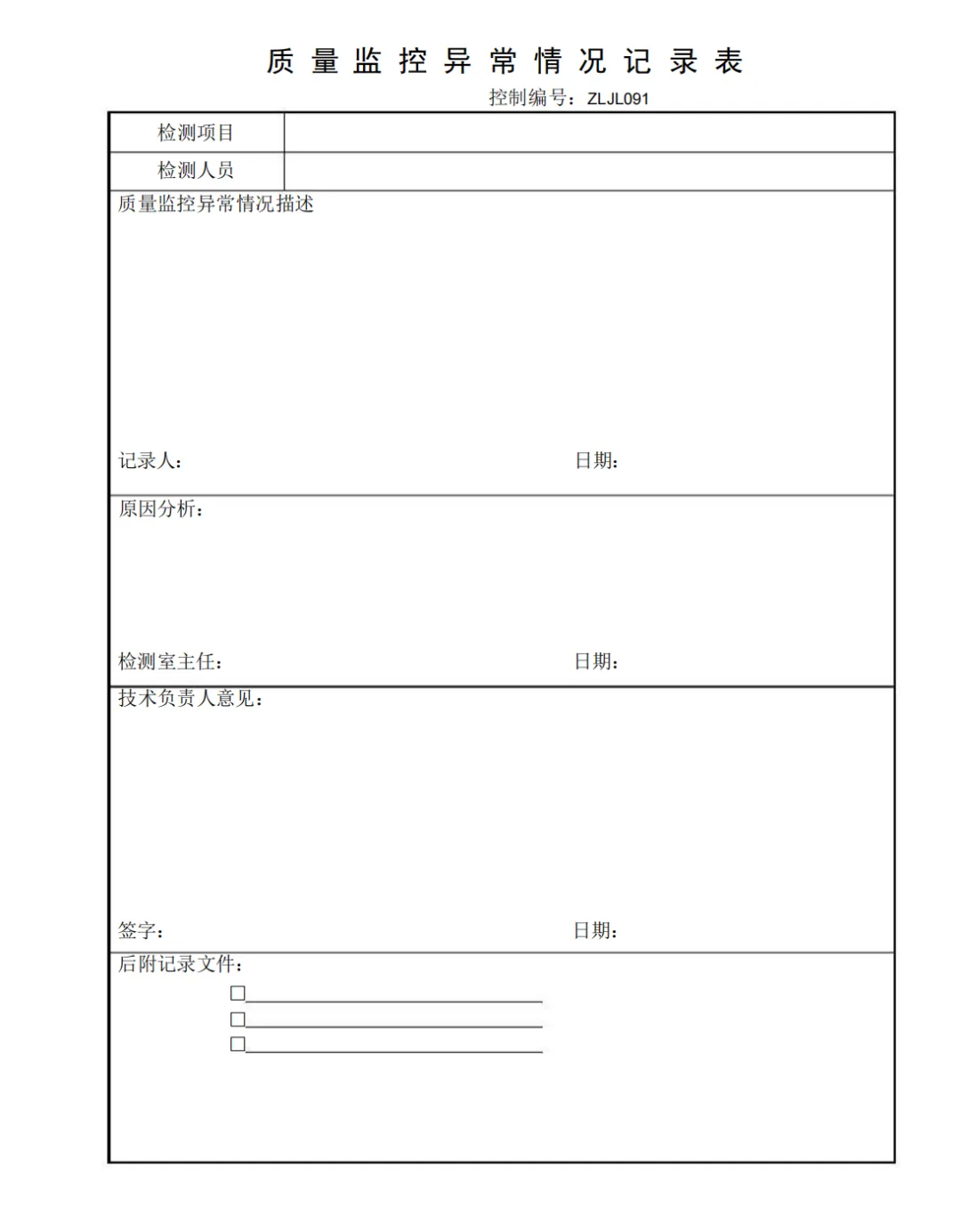 质量监控异常情况记录表