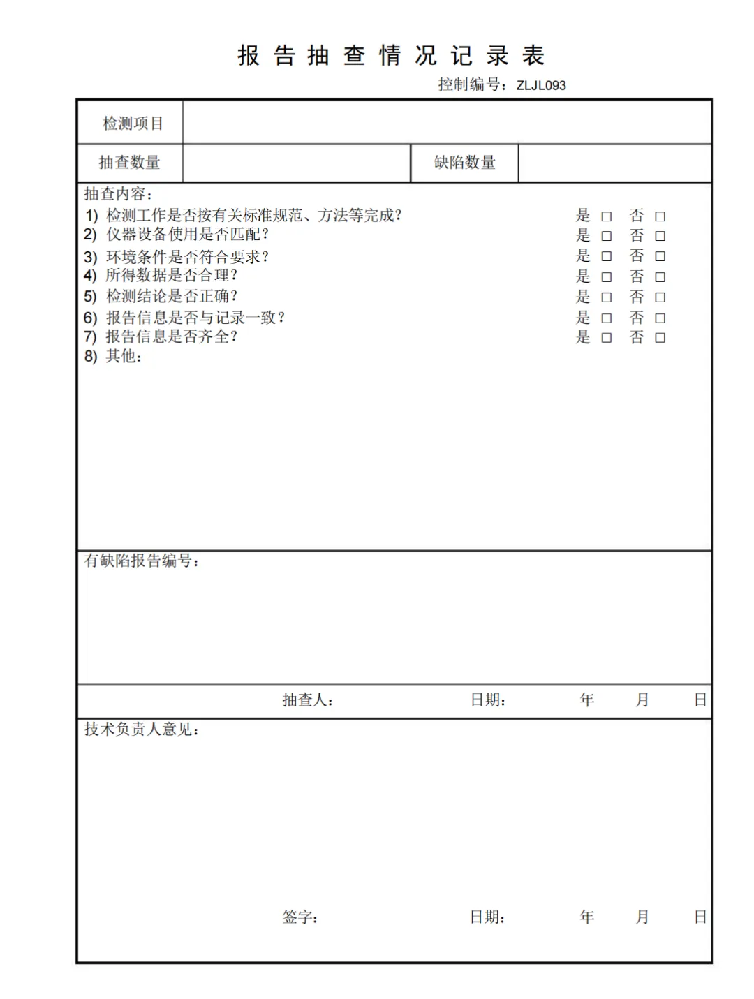 报告抽查情况记录表
