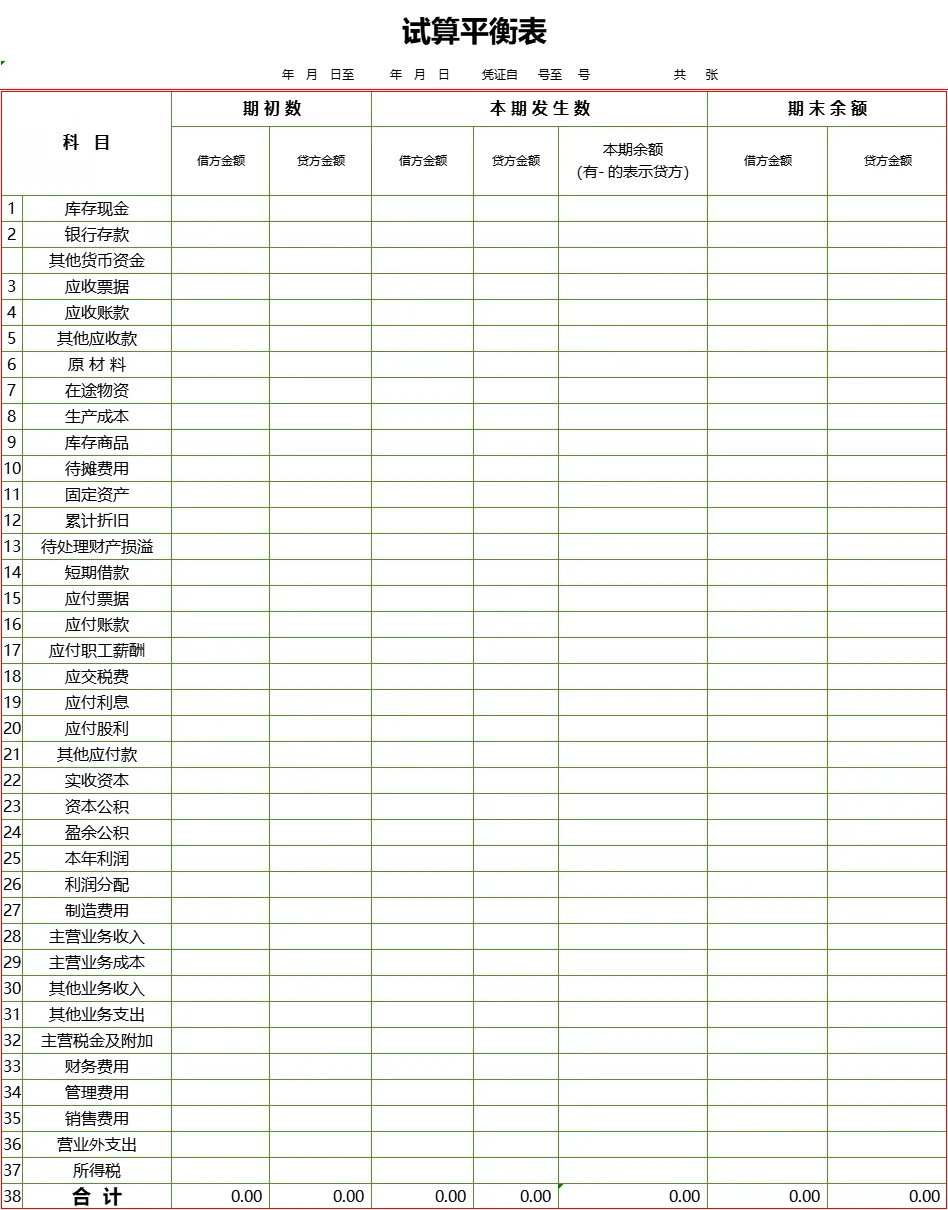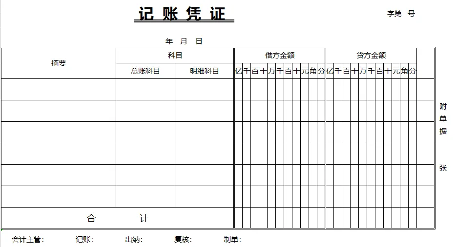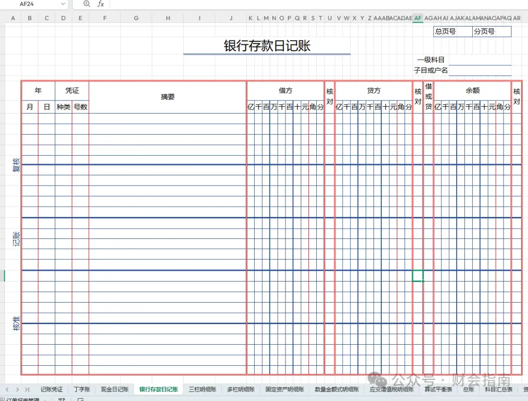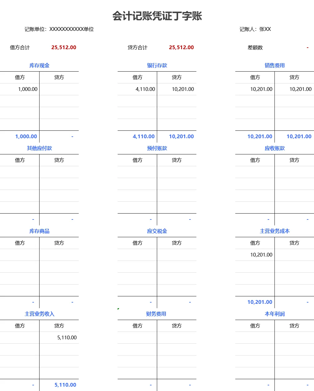 财务手工账Excel模板!全套手工账电子表格模板:记账凭证模板、丁字账模板、试算平衡表、现金日记账明细表模板……等,打印直接用!
