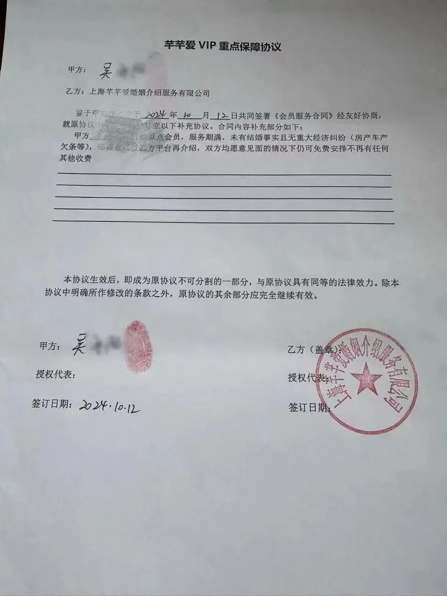 近日,上海市民张小姐发来长达238页的PPT,反映自己和诸多求偶者遭遇的婚恋中介套路。据张小姐描述,“芊芊爱婚介”几名“红娘”交替上阵,不断制造“年龄焦虑”,在诸如:“30多岁是婚恋黄金期,再拖下去优质资源就被挑走了”、“有海量优质资源,肯定能找到满意的结婚对象”等话术的轰炸下,自己与他们签订了《婚介服务合同》,支付基础服务费67800元。但签约后,红娘推荐的男嘉宾与资料严重不符,“要么学历、工作造假,要么见面后就失联,完全达不到约定的匹配标准。”几个月的相亲无果让张小姐十分焦虑,此时销售人员又推荐了一个所谓的“恋爱专家”项目。联系后,“恋爱专家”迅速开始忽悠“升级套餐”:只要额外支付158700元,就能获取更优质的资源,还有专属老师一对一跟进,成功率翻倍。急于脱单的张小姐又签订补充协议,累计消费达22万多元。但没想到,机构不仅推荐的男嘉宾依旧“货不对板”,还逐渐不再安排见面,仅偶尔发几张男嘉宾资料敷衍了事,到最后甚至直接失联了。此时,张小姐才发现,当初签约的婚介公司已经“换壳”,旧公司的账上早已没钱。张小姐通过维权群了解到,和她有类似遭遇的人有数百个,支付的金额从2万多元至20多万元不等。其中,女性占比超90%,不乏博士、硕士等高学历人士。查询工商信息发现,“芊芊爱婚介”还关联了包括上海芊芊爱、京城优恋、禧堂意笙之约等数十家婚恋公司。据上海市民政局发布的2024年1月至11月婚介机构投诉情况显示,上海牵爱缘、禧堂意笙之约、京城优恋、芊芊爱等机构分列投诉量前四位,投诉率均超过3%,涉及投诉总量达285件,核心问题集中在“虚假宣传”“诱导消费”“退款难”。而这些机构背后,都存在交叉持股、频繁变更工商信息的特征,本质上是被同一批人操控的“壳公司”。