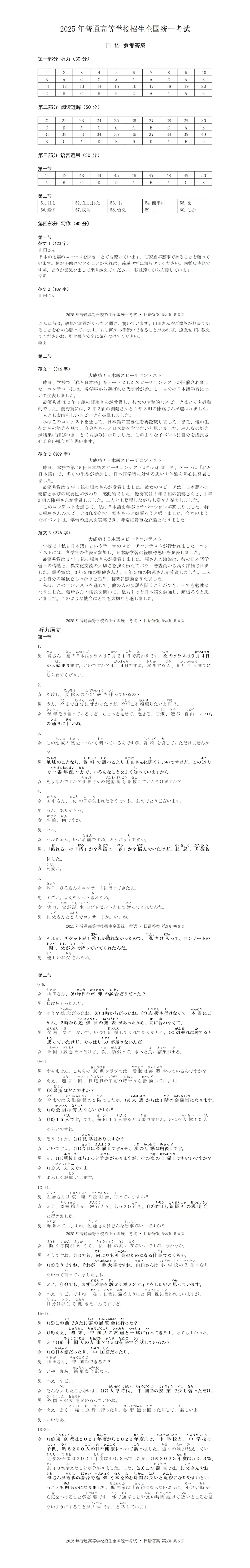 解析!WORD-2025年6月高考日语真题(作文:邮件;大成功!日本語スピ-チコンテスト)+听力+答案详解及听力原文(注音)