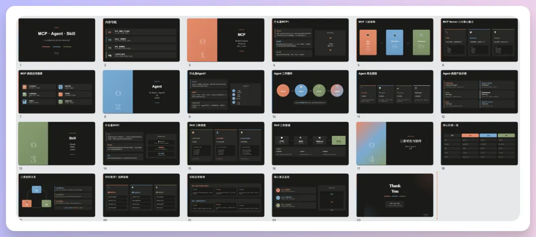 下面是 Dokie 输出的 PPT 效果,链接在这里,可以查看完整版:https://www.dokie.ai/presentation/share/eVxPbeAKkdBN