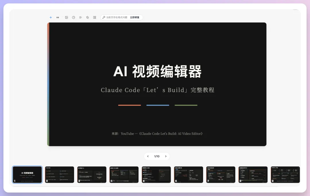 对内容的梳理能力也很不错,没有简单地把文字搬上去,它会重新组织表达逻辑,知道哪些信息该放一起、哪些该拆开讲,整体处理得挺聪明的。而且排版看起来不会一眼就觉得是 AI 做的。
