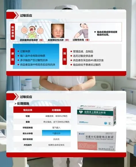 过敏反应也很常见,从皮肤瘙痒、荨麻疹到严重的过敏性休克都有可能出现。这就需要咱们提前做好预防,选择无过敏史供血者,输血前必要时给予抗过敏药;处理时根据轻重程度采取减慢速度、停止输血、吸氧甚至气管切开等措施,全程密切监测生命体征。