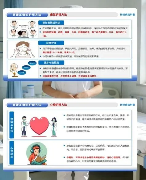 一旦患病,护理细节直接影响康复效果。面部要做好保暖,外出戴口罩围巾,每天用温毛巾热敷;眼部护理不能忽视,眼睑闭合不全的患者要按时滴眼药水、戴眼罩,避免角膜干燥感染;口腔要保持清洁,饭后及时漱口,防止食物残留。病情稳定后,还要指导患者做皱眉、鼓腮等康复训练,循序渐进恢复肌肉功能。