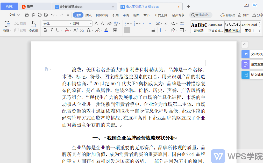 其中目录栏中拥有自动识别目录功能,点击后可以显示文章的目录列表。