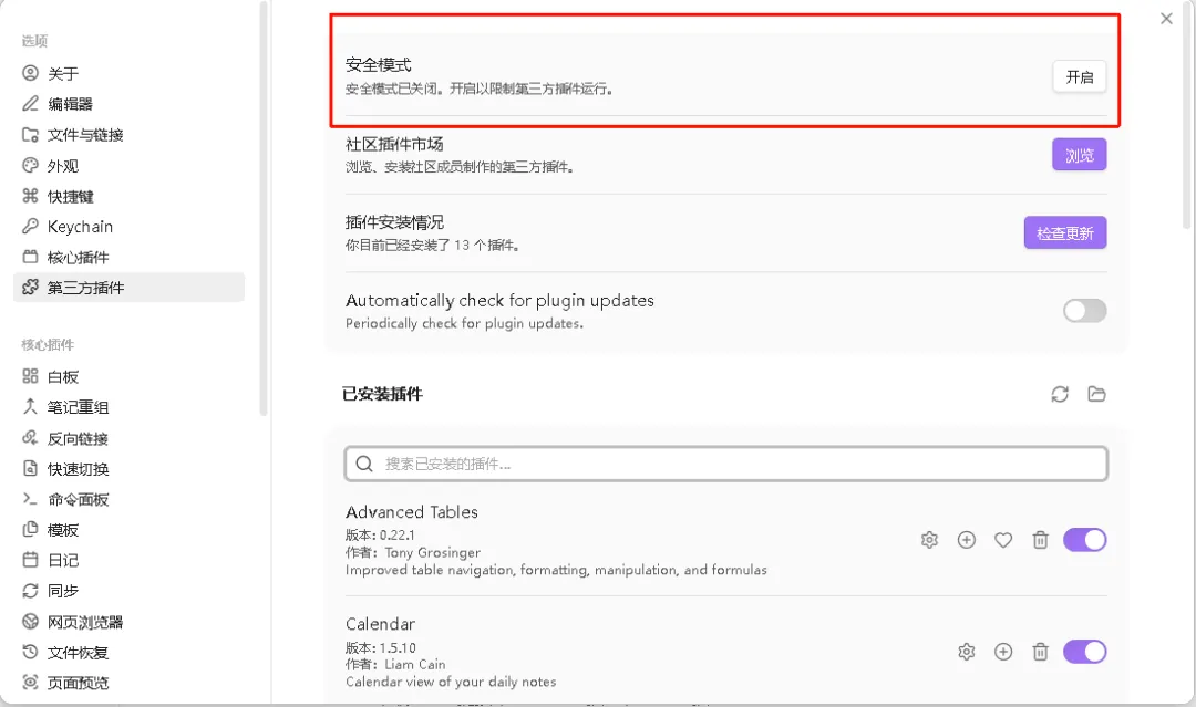 然后需要取消安全模式来下载第三方插件