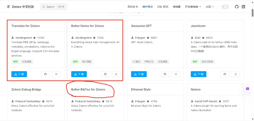 - 到中国Zotero插件市场安装等下需要用到的插件https://zotero-chinese.com/plugins/
