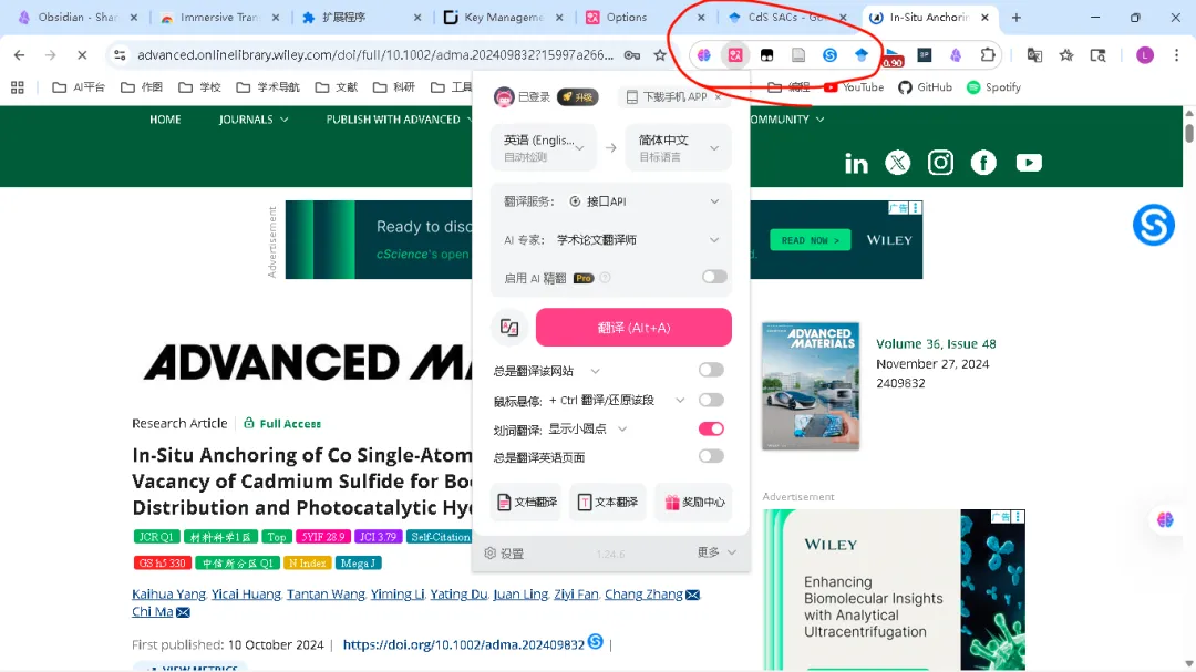 - 下载沉浸式翻译、Obsidian插件、zotero插件