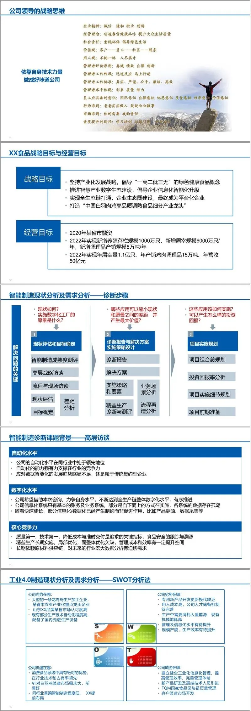 本文件系统呈现了某知名食品企业在智能制造领域的战略布局、现状诊断与未来规划,内容涵盖行业背景、竞争分析、现状评估、标准测评、建设经验及具体实施方案,是一份全面而深入的智能制造转型指导材料。
