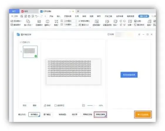 ②随后进行图片转文字,选择“带格式表格”,再点击【开始转换】即可。