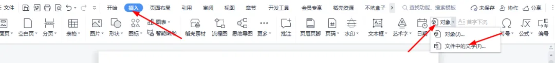 其实, WPS中也自带此功能, 不过跟这个软件相比有些局限性。点击插入—对象—文件中的文字,也可以实现文档合并,不过不能调整文档的顺序,是个弊端!