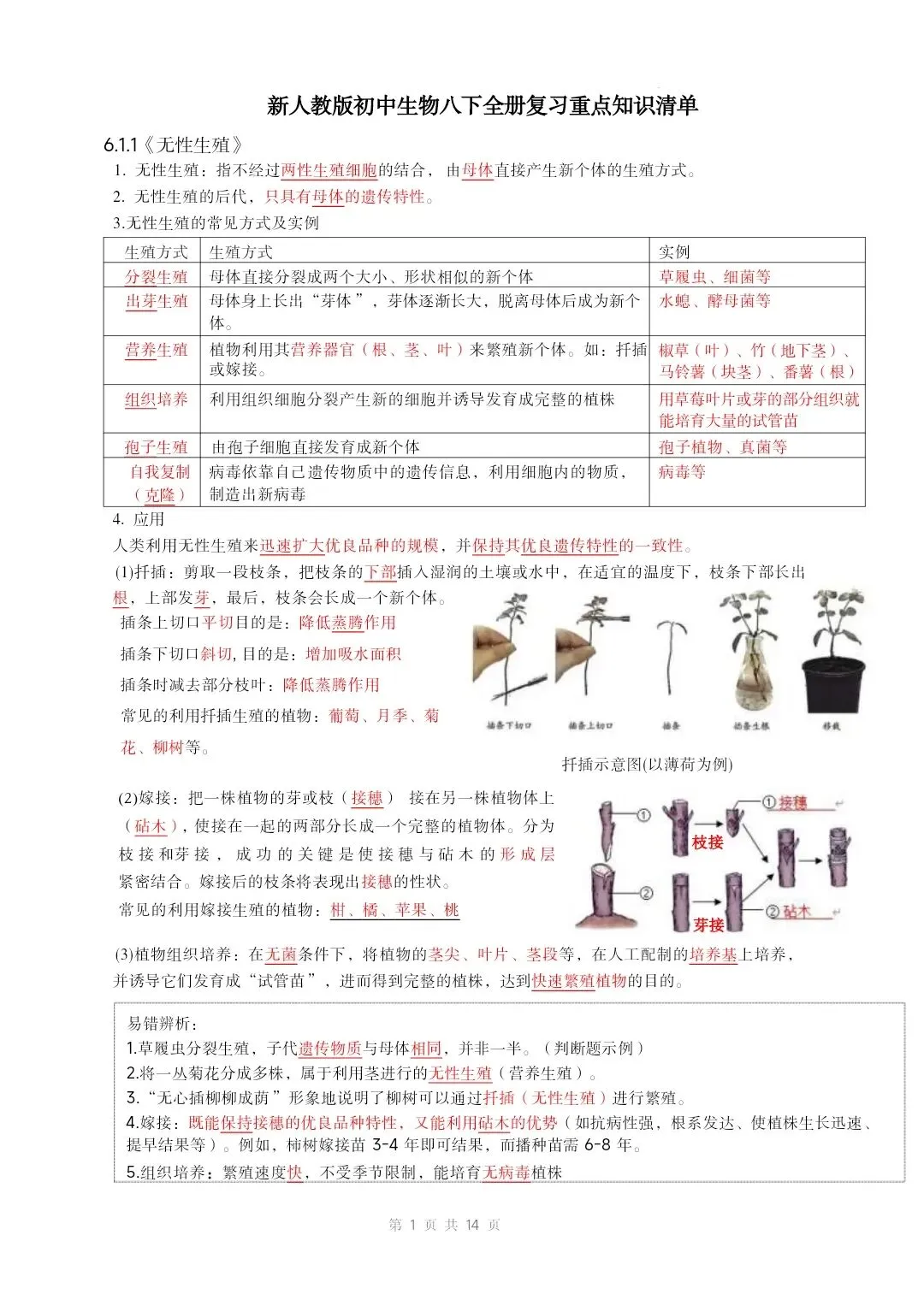 新人教版初中生物八下全册重点知识清单 有word文档 部分截图如下: