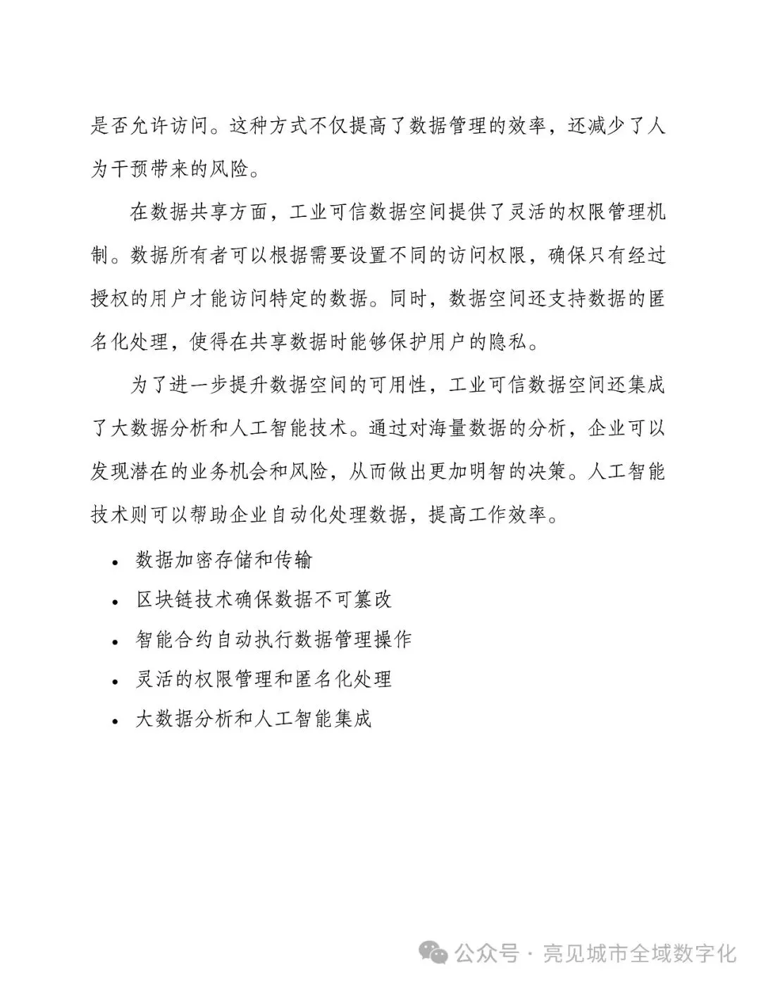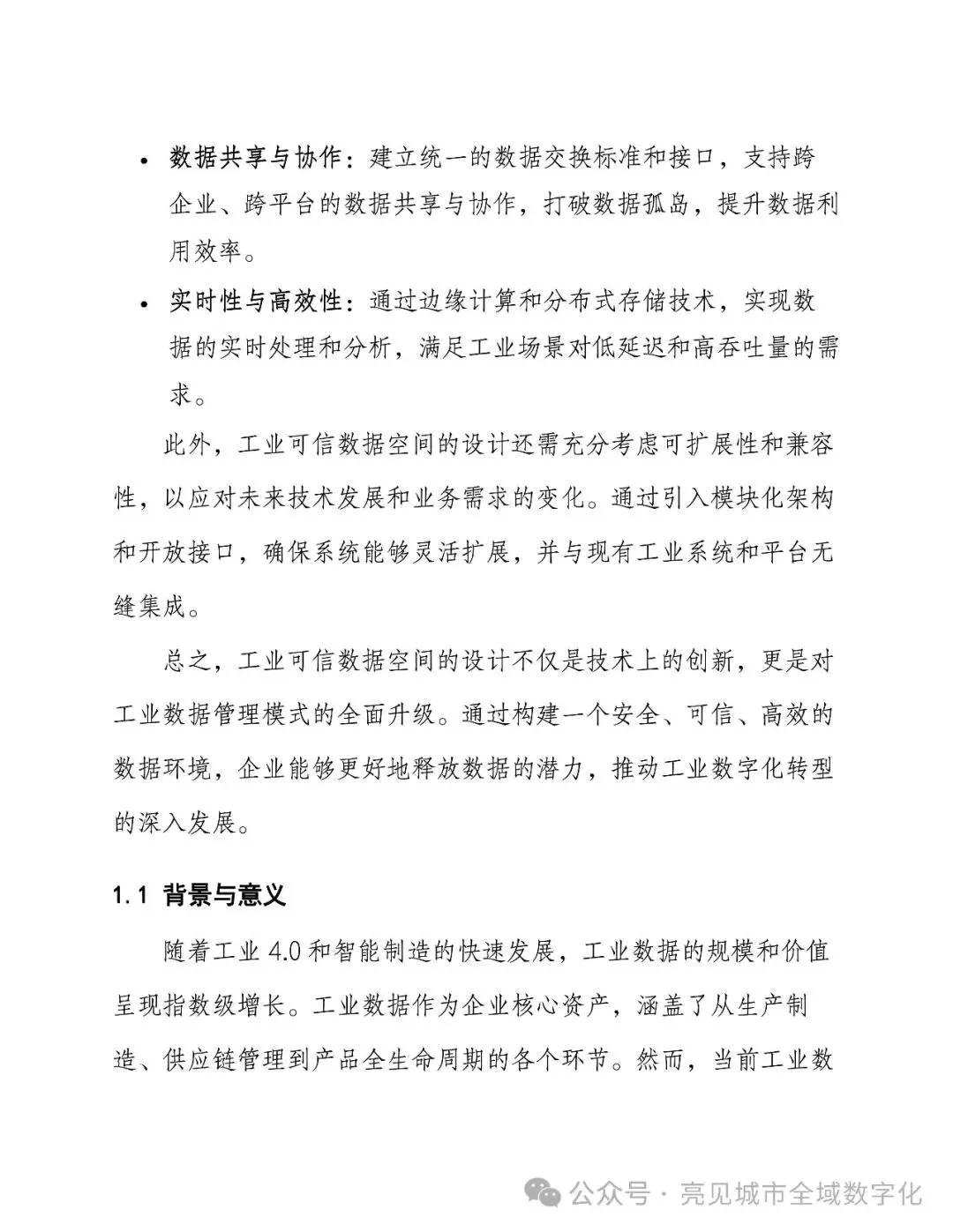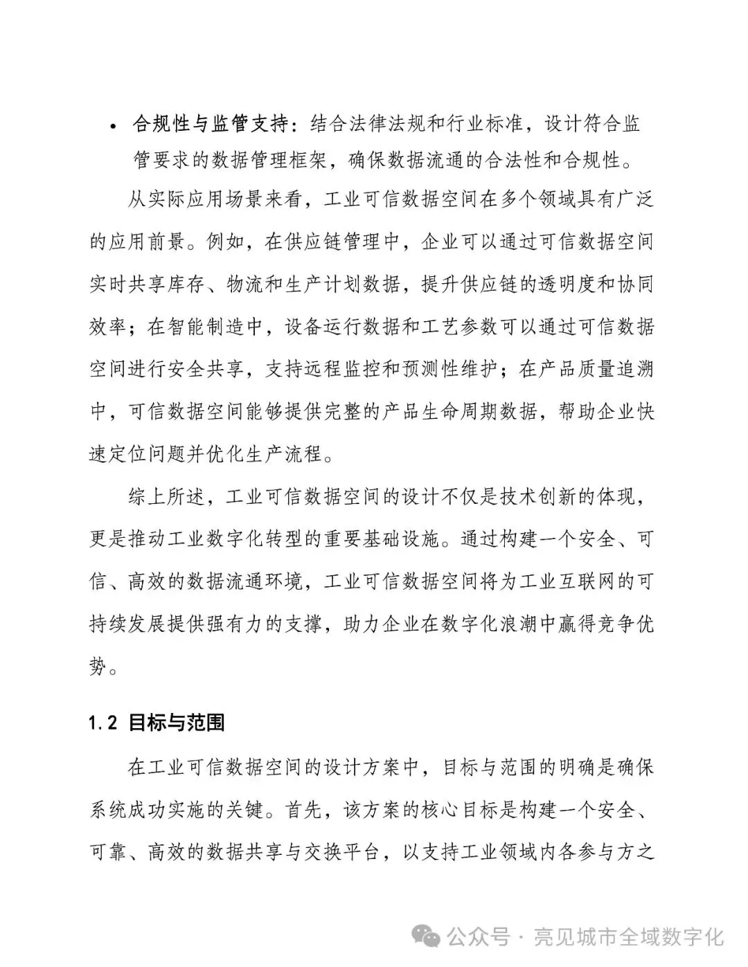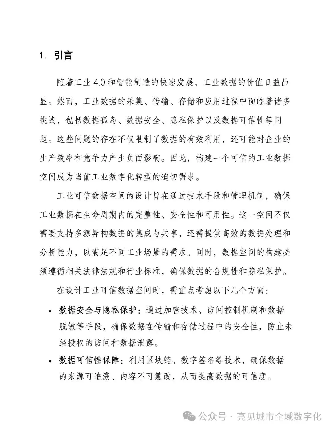 1、点击上方关注“亮见数字城市”公众号,公众号后台回复关键字:“[395页Word]工业可信数据空间设计方案”,即可免费获取介绍资料下载(仅限PDF文件)。 2、星球会员直接进星球号智慧城市星球智库,获取下载近万份Wrod、PPT方案(可编辑文件)、行业报告、地方数字化政策、招标资料等资料。 |