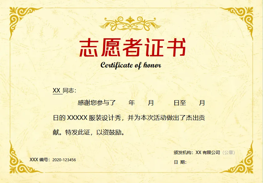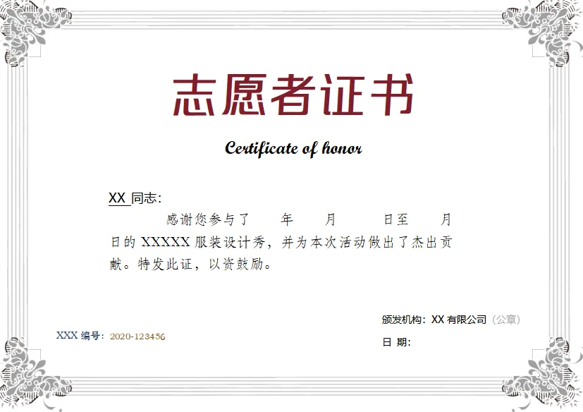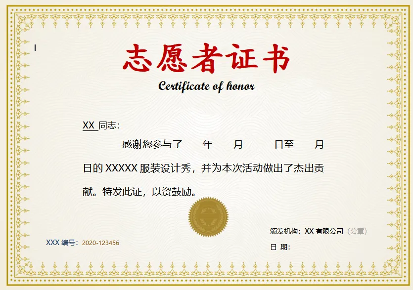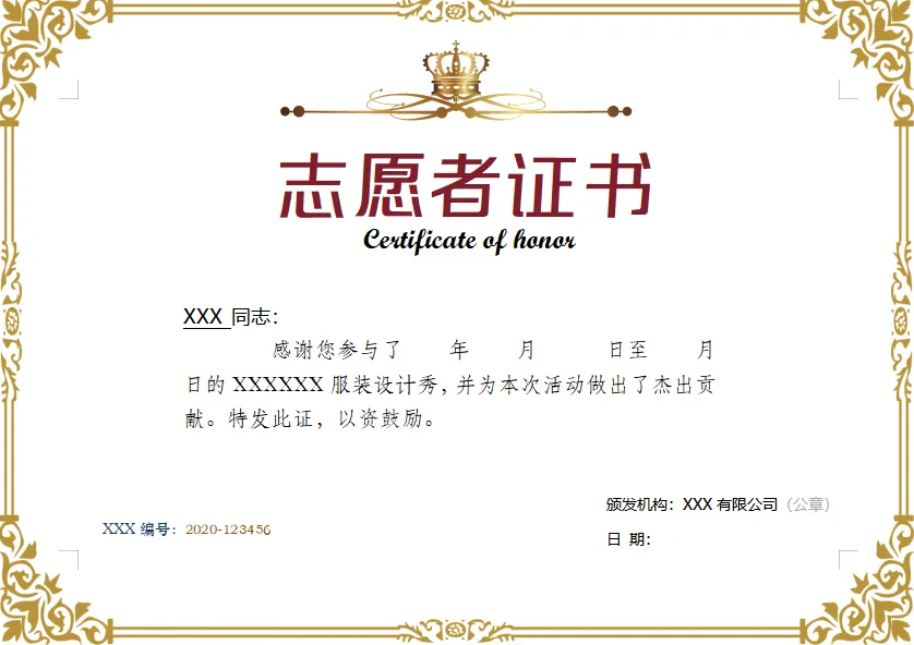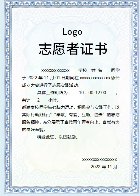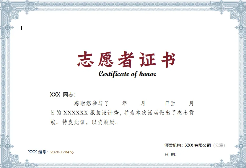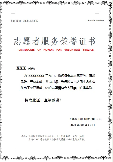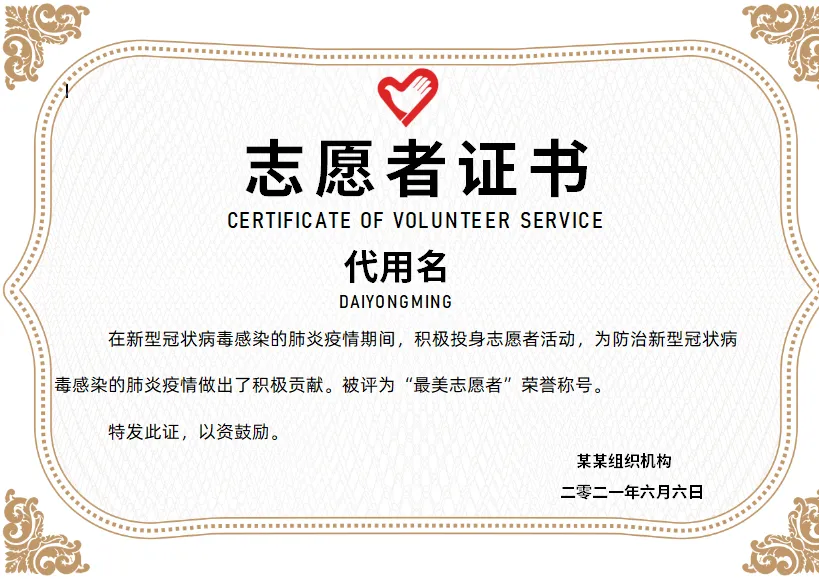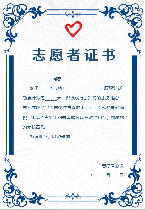 志愿者证书