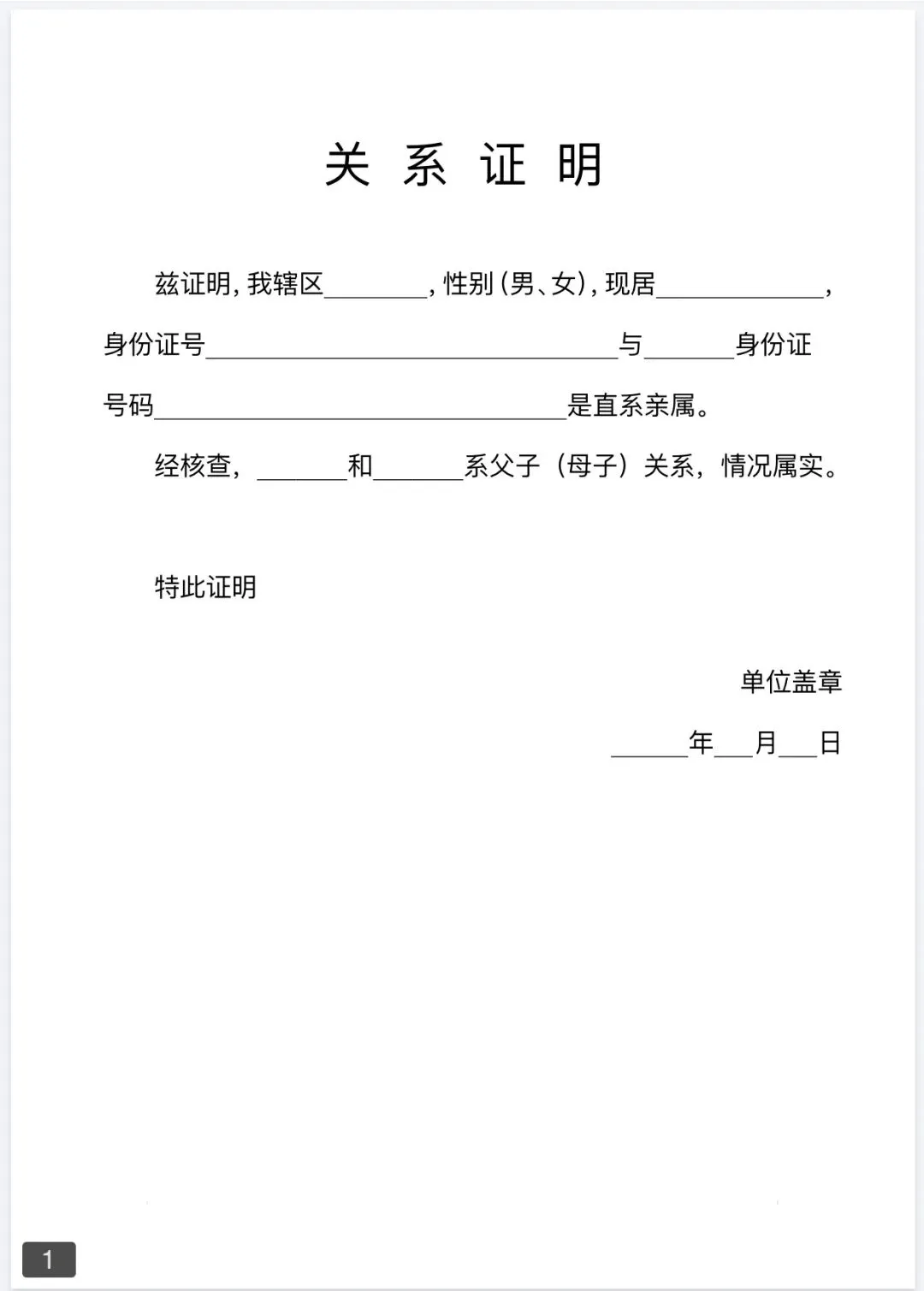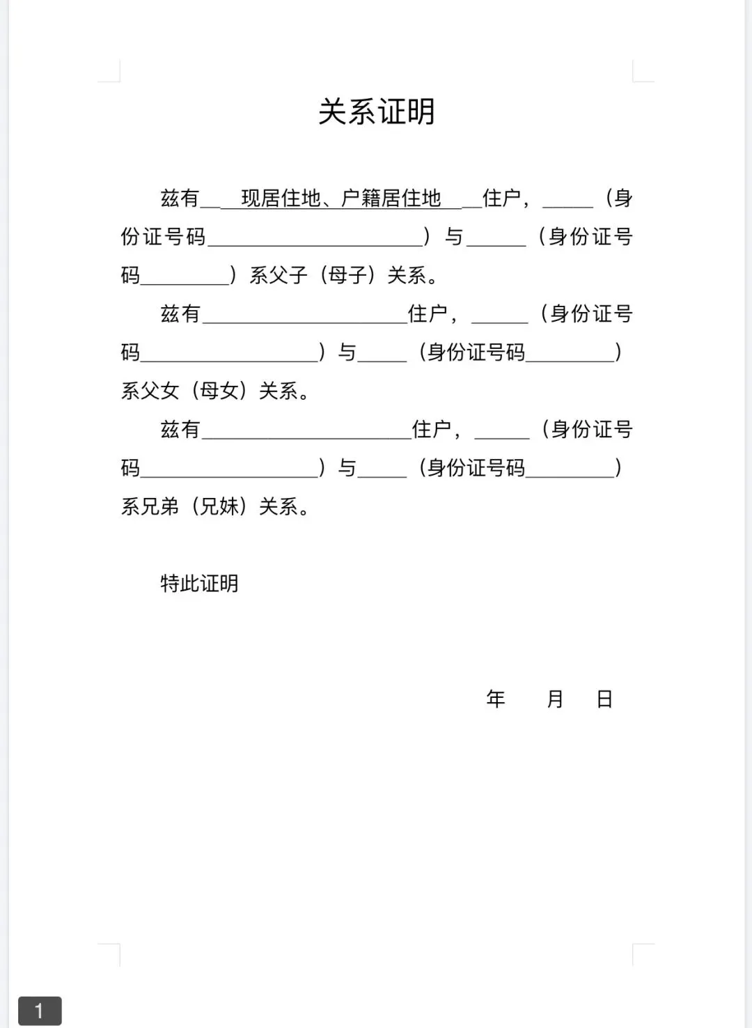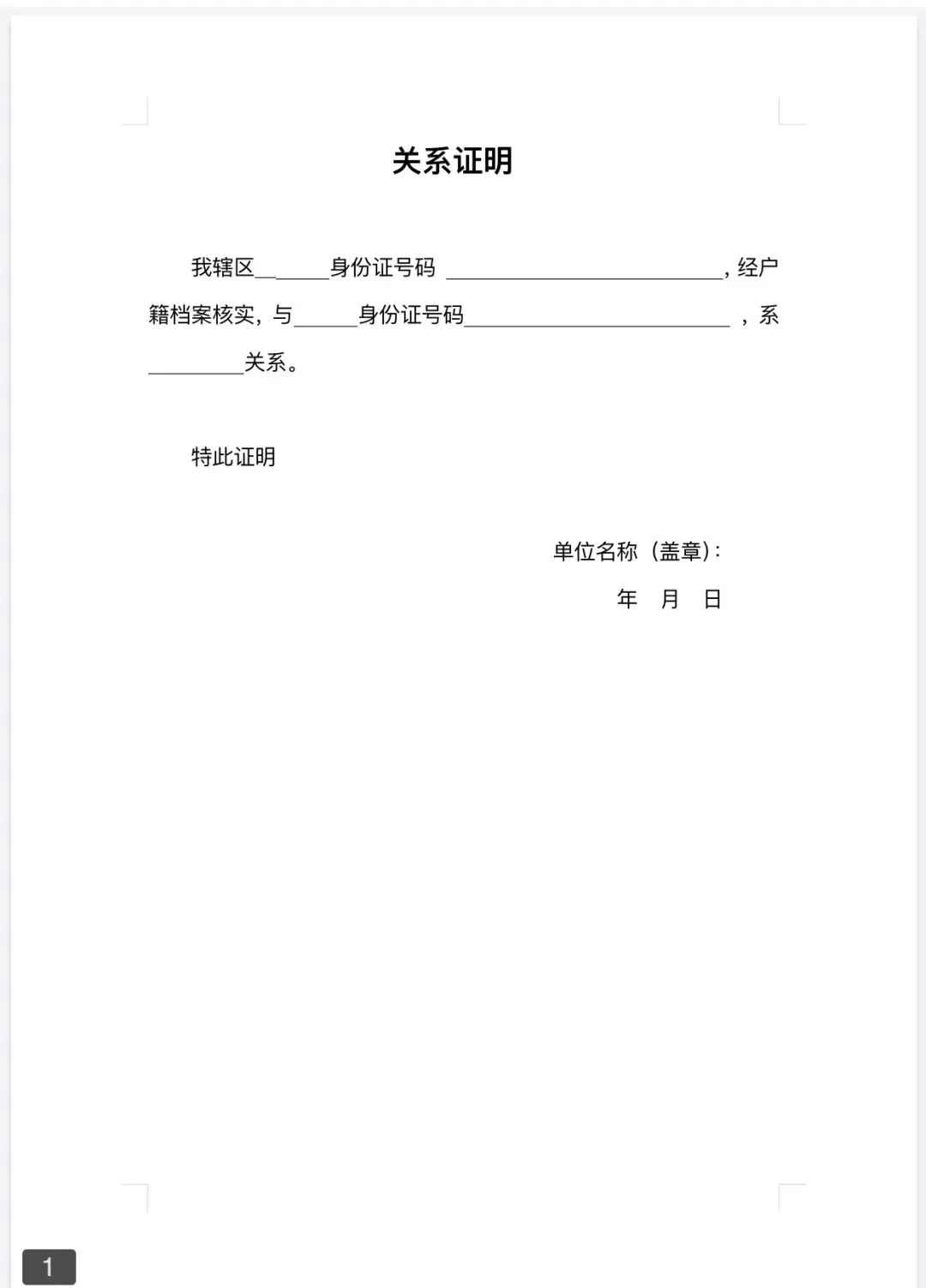 >关系证明模板(Word文档可编辑)