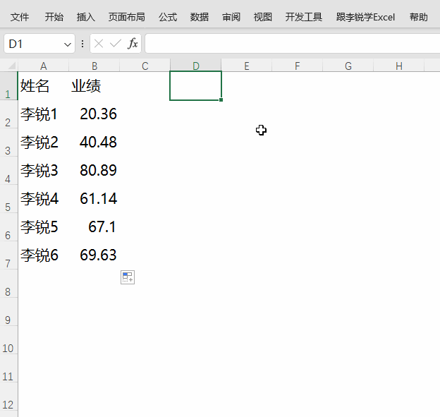 业绩字段使用了随机函数RAND,这是个老函数,不需要我多解释了。