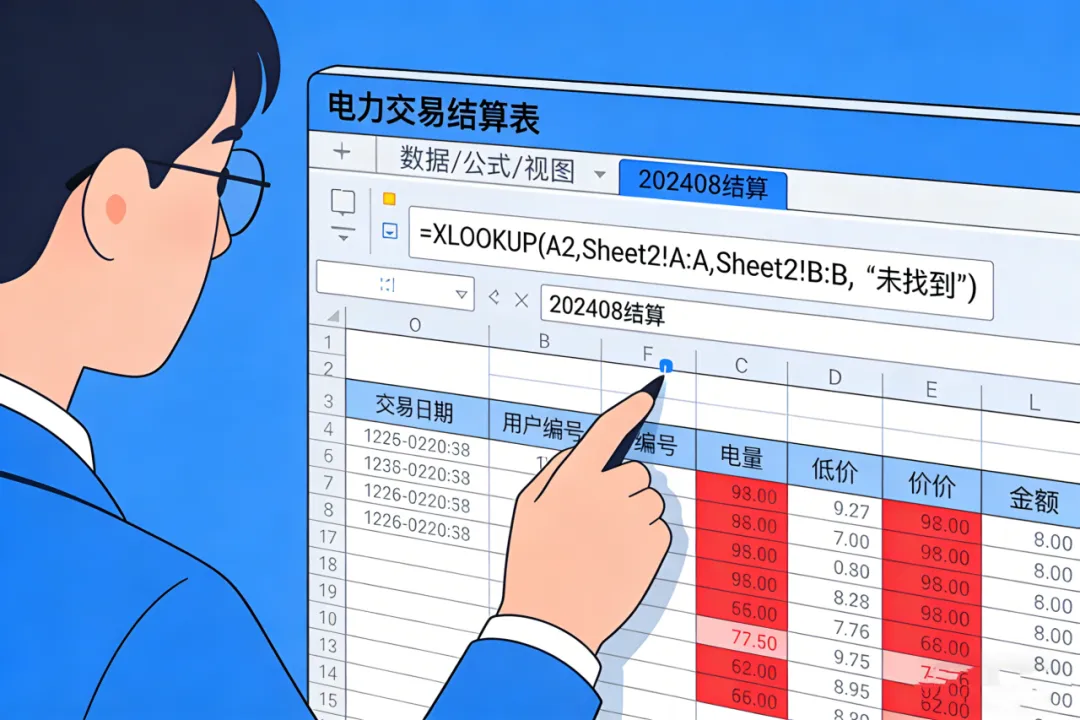 结算需频繁核对交易平台出清日志与内部台账,手动操作易出错。XLOOKUP可跨表精准抓取数据,搭配IFERROR将错误值转为“未匹配”提示,既能快速定位差异,又能保障后续计算顺畅,效率提升80%。