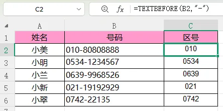 如下图所示,要根据A列的号码,提取减号前的区号,也就是需单独提取区号。TEXTBEFORE函数用于返回指定间隔符号前的字符。TEXTAFTER函数用于返回指定间隔符号后的字符。如下图所示,需要根据已知A列日期,需快速判断对应季度,无需手动划分月份区间。这个公式里,巧妙利用月份与2的幂次、字符长度的对应关系,快速得出季度。MONTH(A2):提取日期中的月份(1-12);