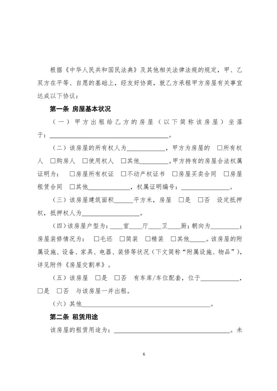 第二条 租赁用途