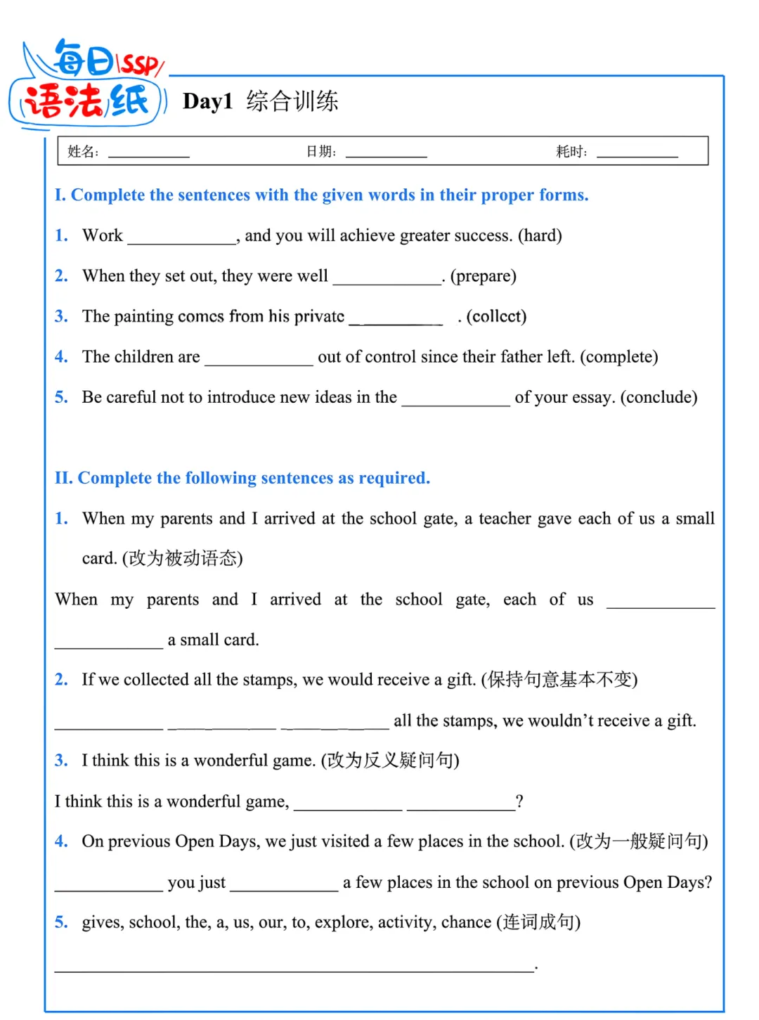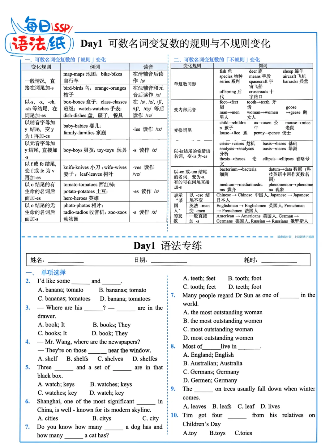 小初高英语《语法专练》WORD电子版(含答案)| 可下载打印