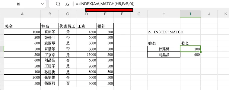 2、逆向查找(INDEX+MATCH),这是组合函数,与正向查找相反,相信大家使用频率不高,但是能记住公式,在多列数据反向匹配中真的能提高大家的工作效率,案例: