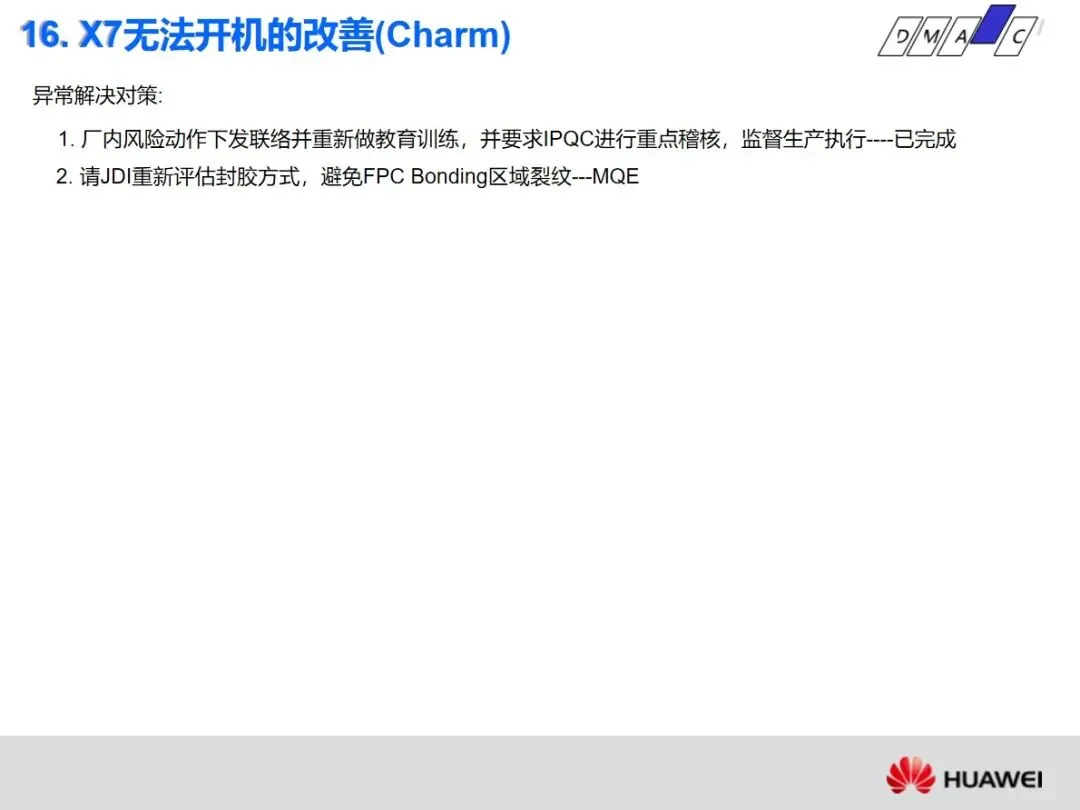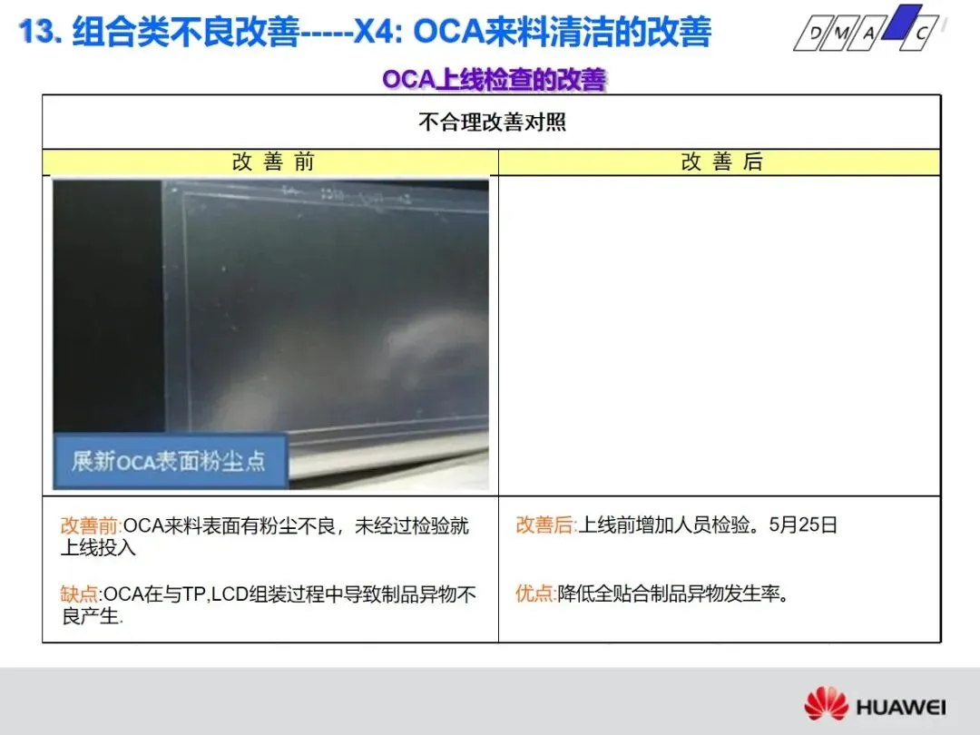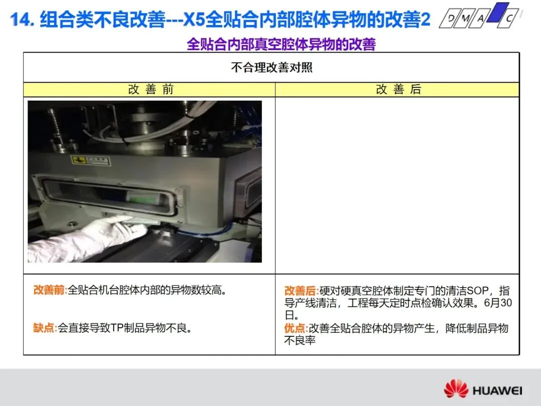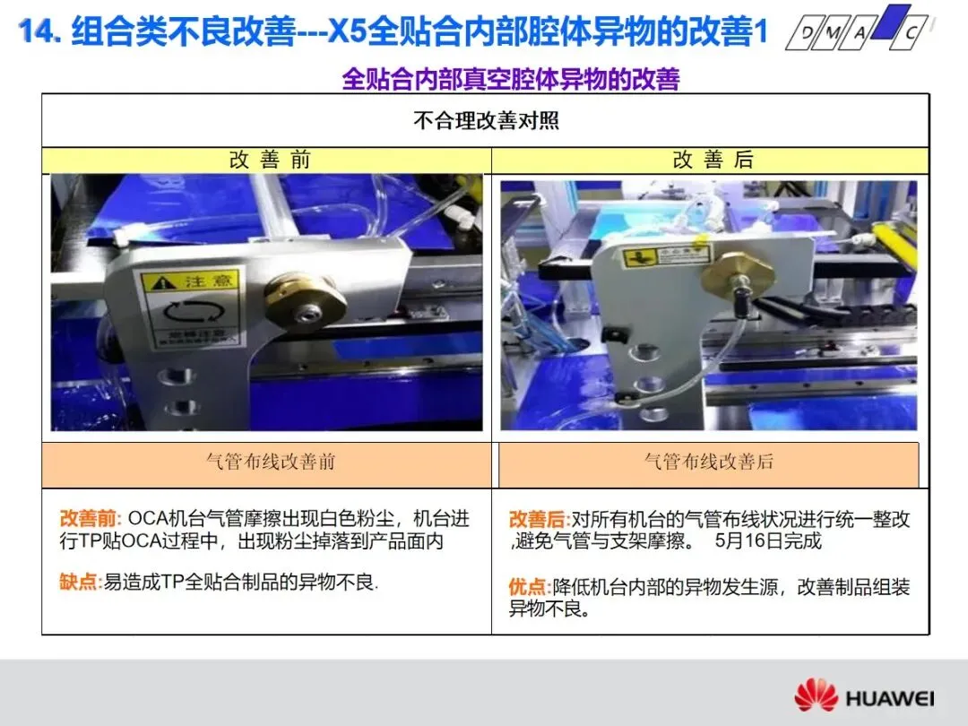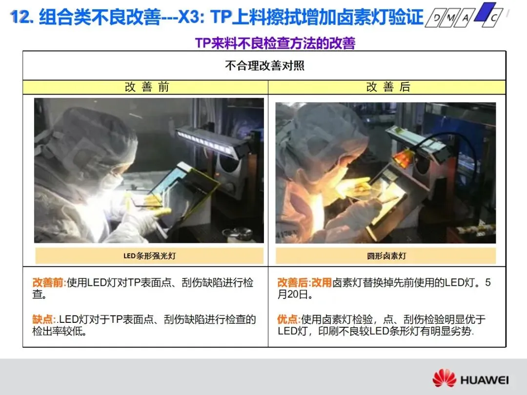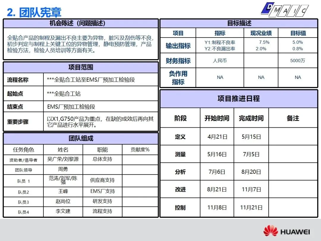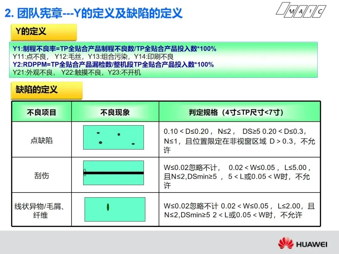 华为启动六西格玛持续改进项目,核心聚焦 TP 全贴合 FDPPM 不良问题。该问题主要表现为异物、脏污、刮伤等缺陷,直接影响产品质量与用户体验,初步判定与制程异物管理、静电预防、检验方法及人员培训相关,项目覆盖全贴合工站至EMS厂预加工检验段,以 X1、G750 产品为重点,后续逐步向其他产品拓展。