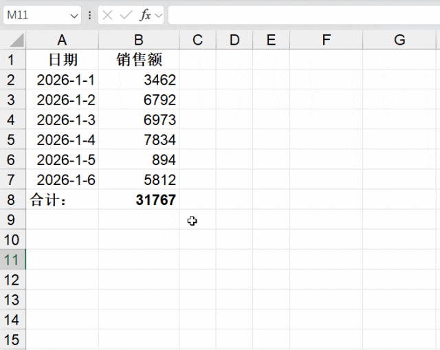 需求:销售额汇总,公式需要自动将插入的当日销售额累计汇总。