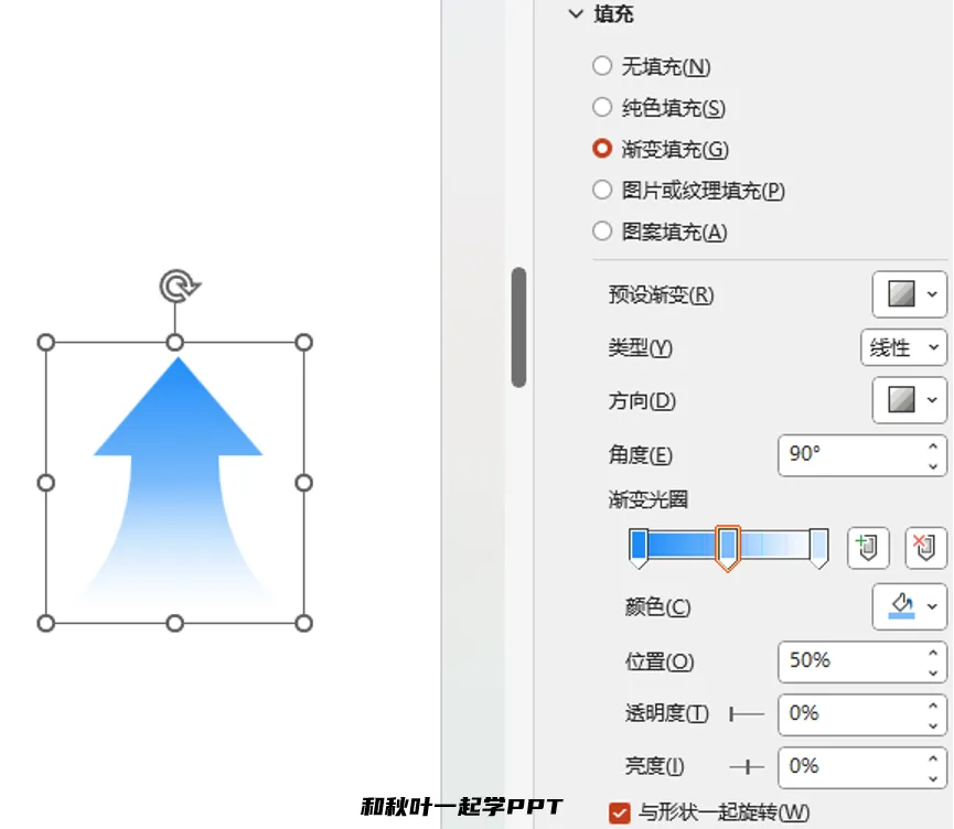第三步,设置渐变填充,一个好看有设计感的箭头就完成了。