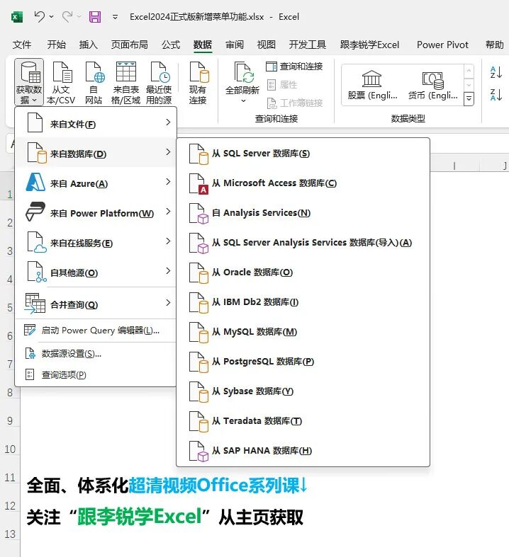 下面的截图懂的都懂,这是PowerQuery的入口,获取数据的来源更多了,更方便Excel与PowerBI结合。