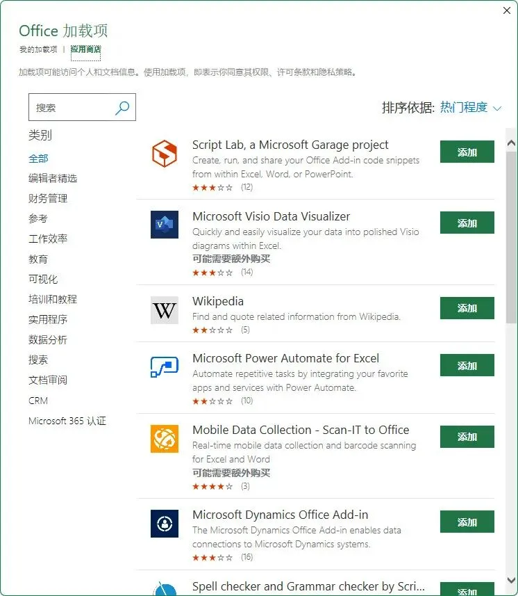 加载项也很贴心的分类展示,便于你根据需要选择各种加载插件。