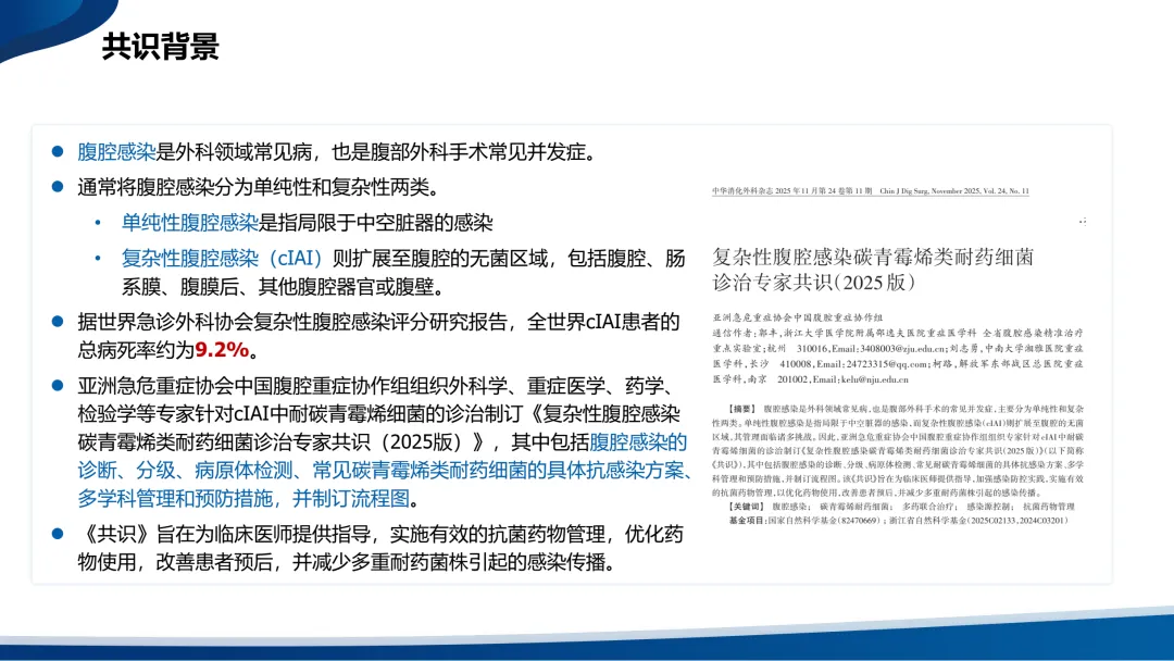 据世界急诊外科协会复杂性腹腔感染评分研究报告,全世界cIAI患者的总病死率约为9.2%。