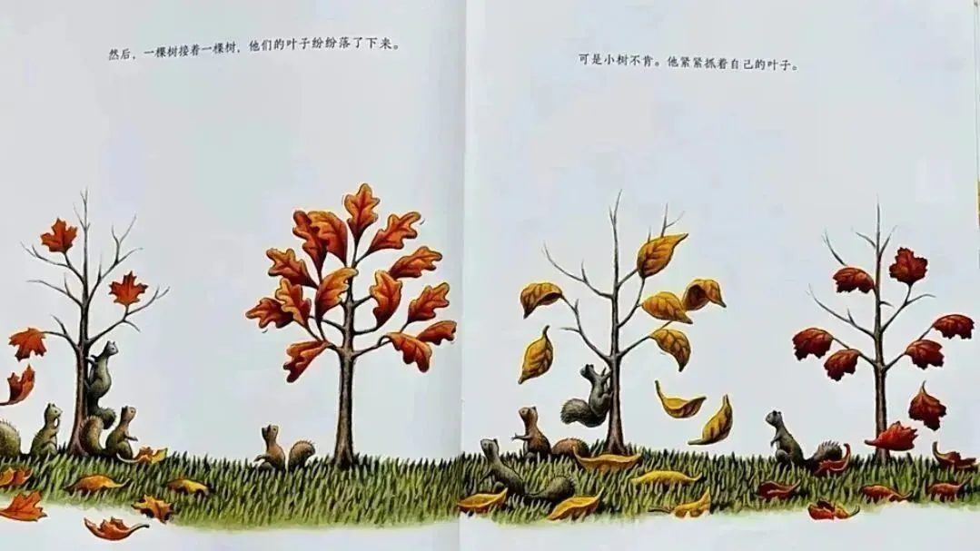 可是小树还是紧紧抓着自己的叶子。