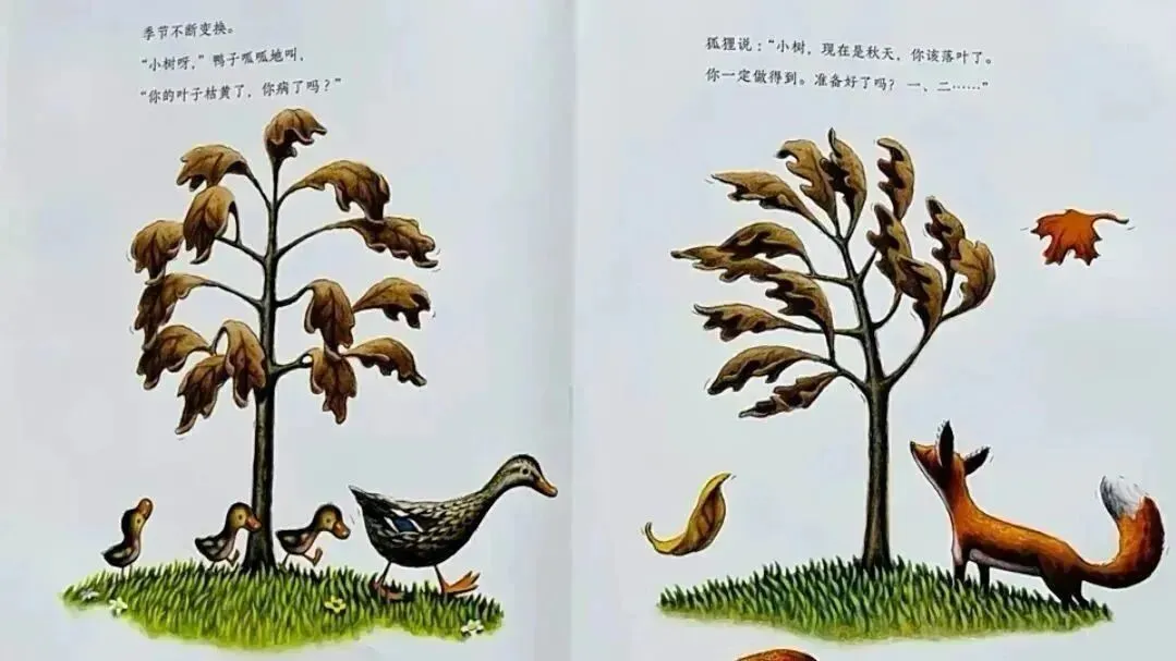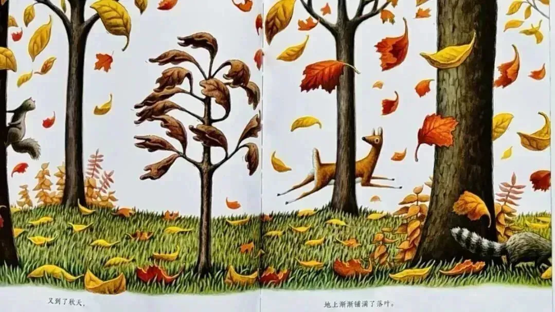 狐狸说:“小树,现在是秋天,你该落叶了。你一定做得到。准备好了吗?一、二......”