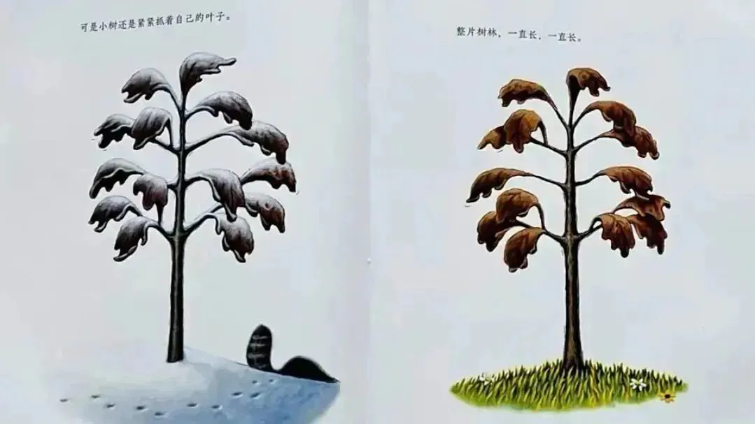 可是小树不肯,他紧紧抓着自己的叶子。