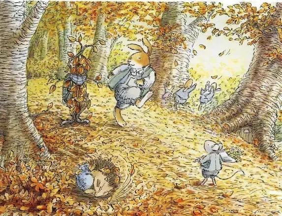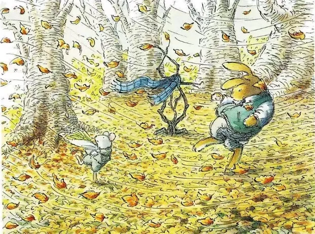 一个凉凉的秋天的早晨,斯玛杰看见别的兔子在追落叶玩,突然有了个主意:他用叶子多的枯树枝编了一只树叶兔。
