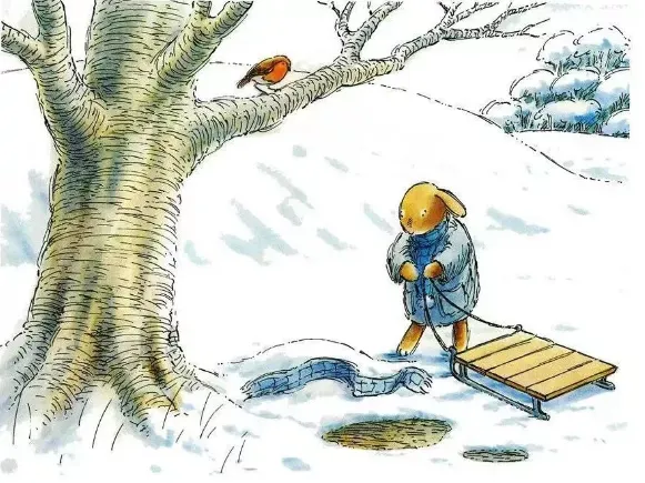 不久,下雪了。斯玛杰堆了一只雪兔子。