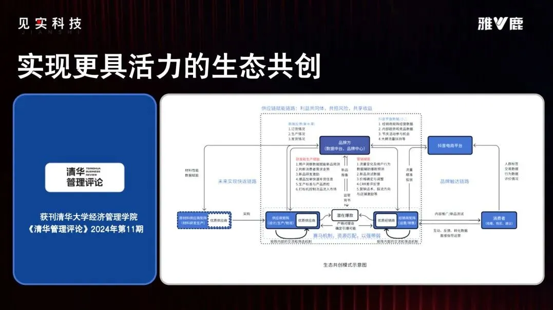 第一件事,是生态重构:4WD数字化生态系统,阿米巴单元自驱。我们从原来的进销存模式,升级成上下游一起在平台上做事。说白了,就是大家一起把蛋糕做大,再一起分蛋糕。蛋糕越大,每个人分到的那一块就越大,当所有人的动力都来自这里,就能真正形成了自驱机制。到后面,每一个直播间都要自己投放、自己搭团队、自己找主播,每个直播间都是一号位。一号位的自驱,最终支撑起了雅鹿今天的矩阵规模——我们的店铺矩阵在全网是第一。