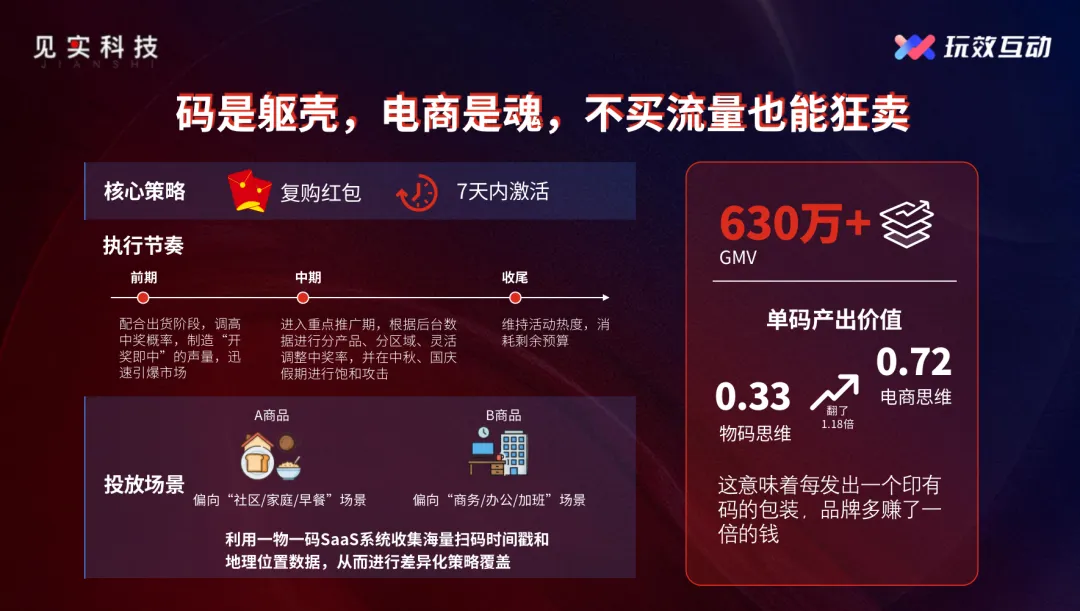 4、物码电商的核心逻辑,从“物码思维”到“电商思维”的跃迁。码只是一个躯壳,电商才是它的魂。为什么叫“物码电商”而不叫“物码营销”?因为营销侧重于花钱搞声量,而电商侧重于赚钱搞GMV。这部分要求品牌必须引入成熟的电商运营逻辑。终极目标是,让卖出去的货,帮你卖更多的货。