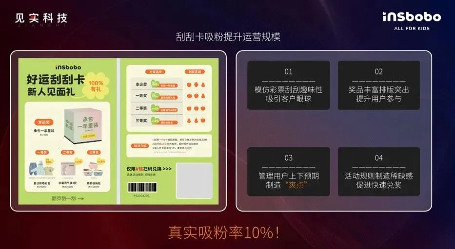 3、服装行业加粉率普遍只有 3%–4%,我们用包裹刮刮卡做到了10%。关键有这几点:
