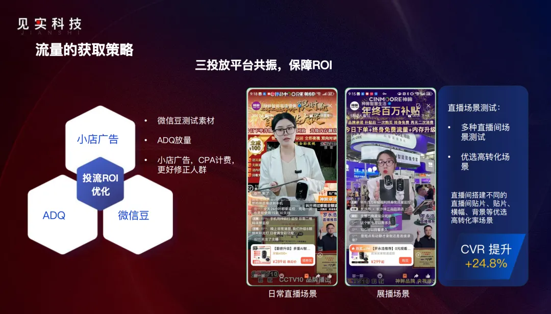 5、微信豆、ADQ、小店广告放在一起,才是一个完整、稳定的投放结构。我们目前比较成熟的一套比例是:45%投微信豆,负责高ROI;25%投小店广告,负责稳效率、控风险;30%投ADQ,负责放量和规模。通过这样的组合,直播间既能跑得动,又能跑得稳,整体ROI才能长期成立。