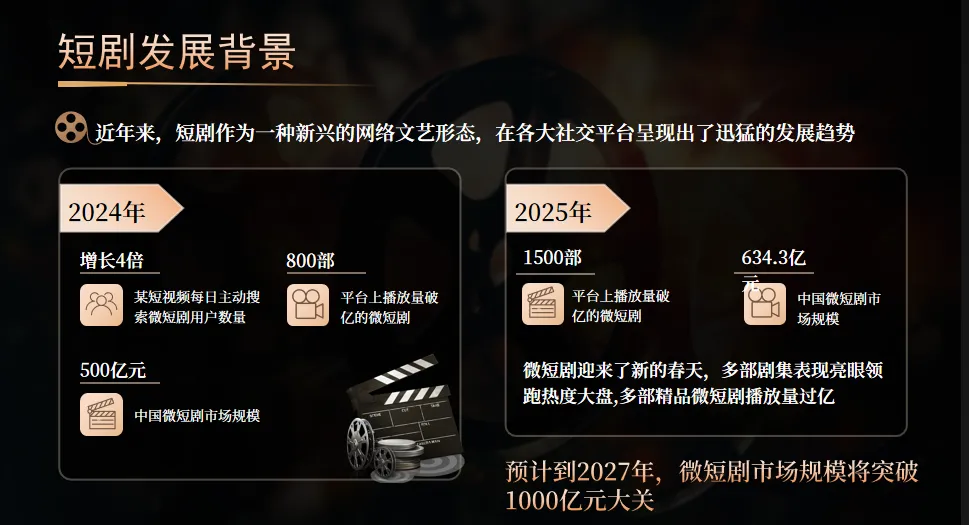 2、短剧赛道并不是概念市场,而是已经被数据跑出来的结果:2024 年竖屏短剧规模同比增长4倍、突破500亿元,到2025年整体规模超过600亿元,播放量破亿的短剧已经超过1500部,这些数字意味着它已经进入可以持续放量、而不是偶发爆款的阶段。