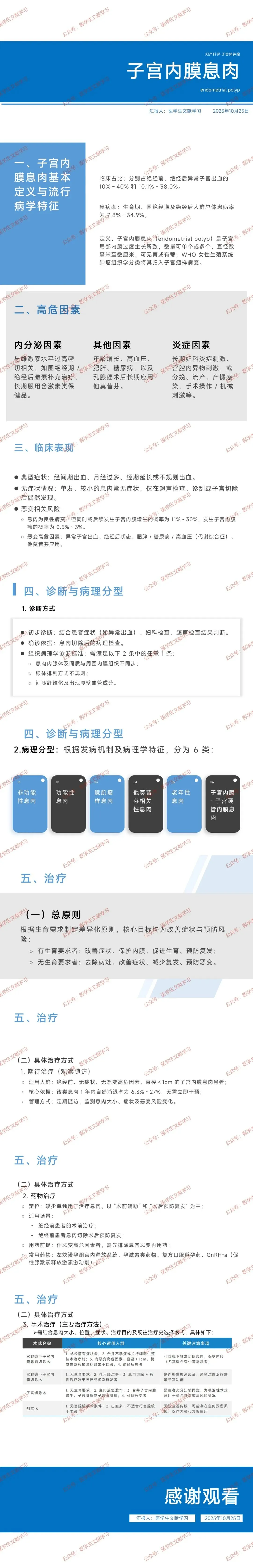 - 恶变高危因素:出现异常子宫出血、处于绝经后状态、合并肥胖 / 糖尿病 / 高血压(代谢综合征)、长期应用他莫昔芬,均会增加息肉恶变风险,需重点关注此类人群。