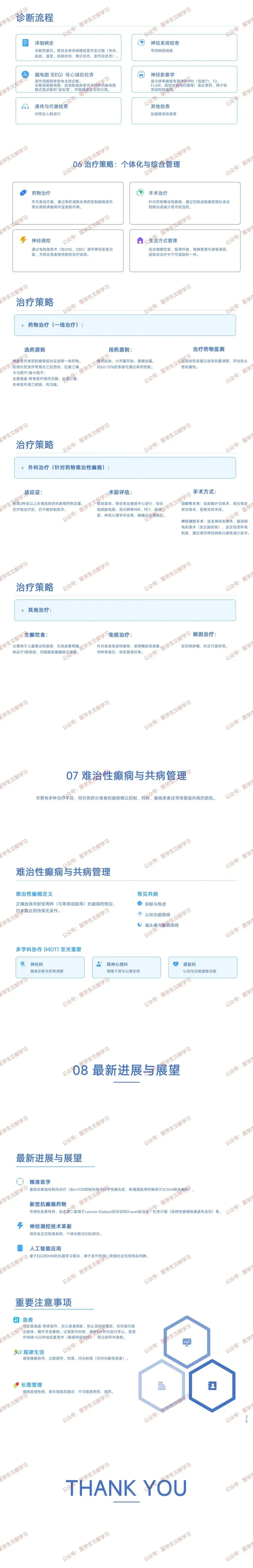 - 选药原则:按发作类型 / 综合征选择(局灶性发作选左乙拉西坦、卡马西平等;失神发作用乙琥胺、丙戊酸)。
